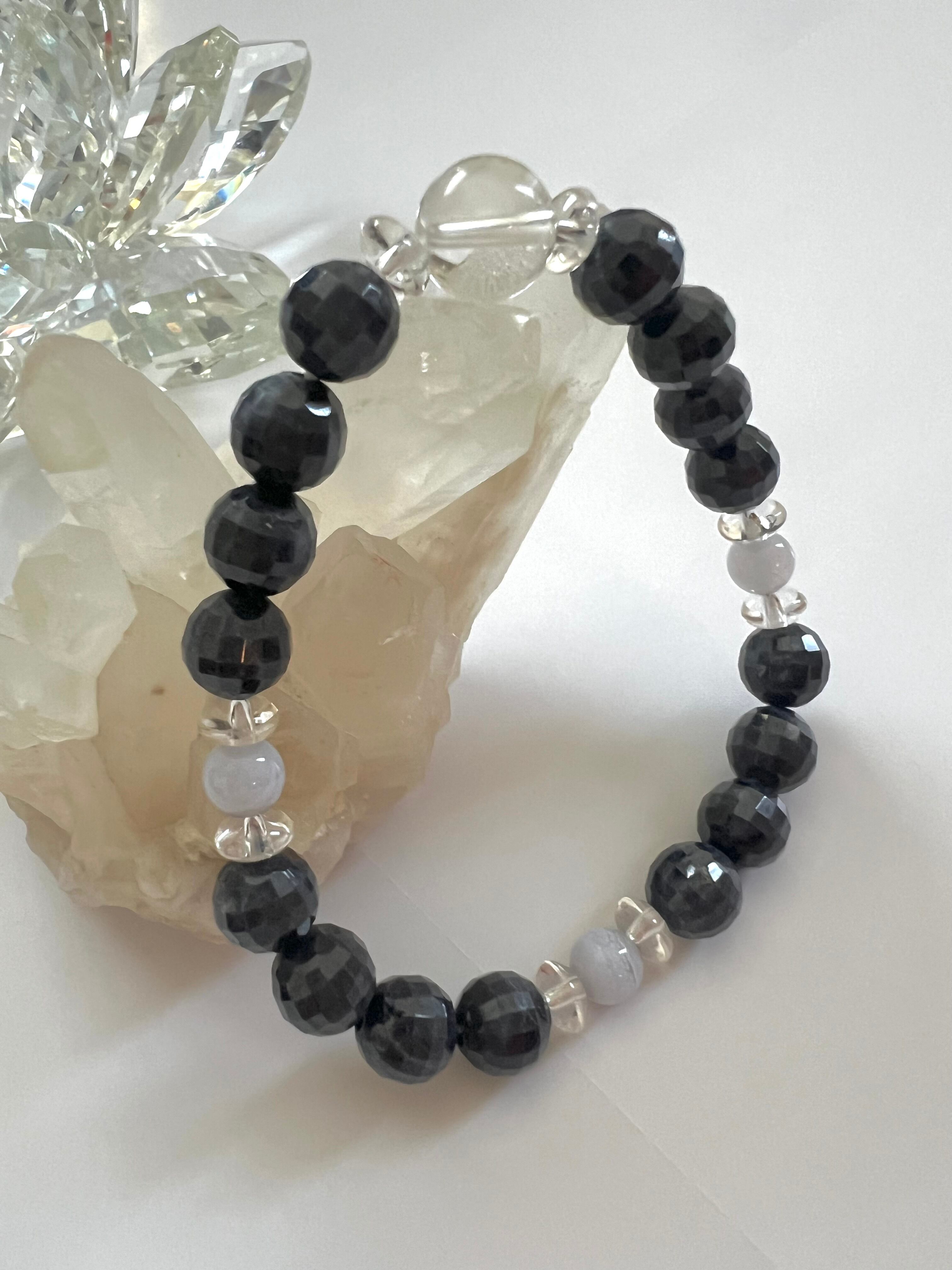 カットサファイア、ブルーレースアゲート、そろばんカット水晶が生み出す調和が、あなたの個性を引き立て、心豊かな毎日をもたらしてくれるでしょう。美しさとエネルギーを兼ね備えたこのアイテムで、心地よい日々を過ごしてみませんか?カットサファイアとブルーレースアゲート、そろばんカット水晶の持つ特別なエネルギーが、あなたの生活をより輝かしいものにするサポートをします。