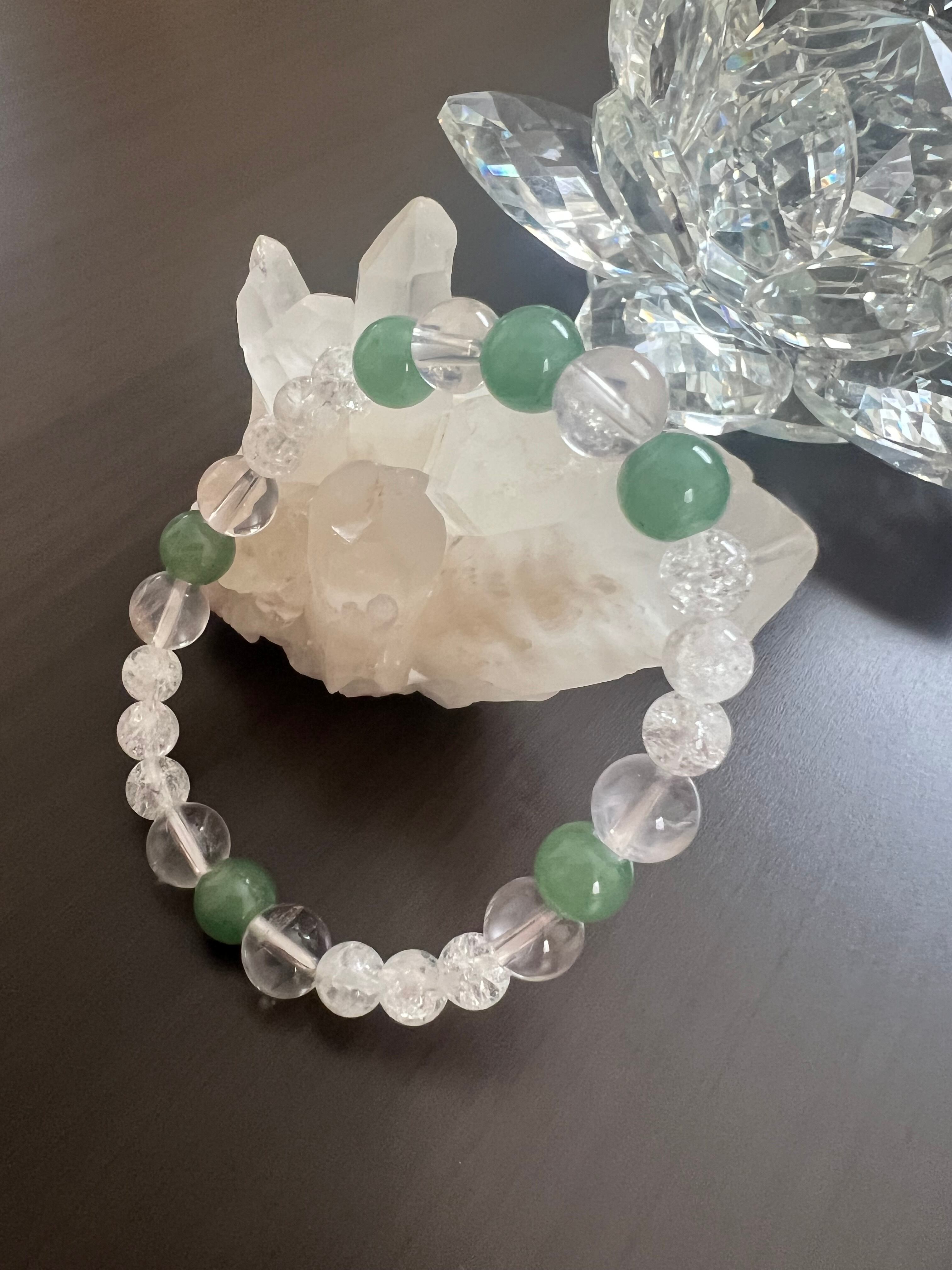アベンチュリン、ローズクォーツ、クラック水晶の美しいデザインが、あなたの日常に幸運と愛をもたらしてくれることでしょう。