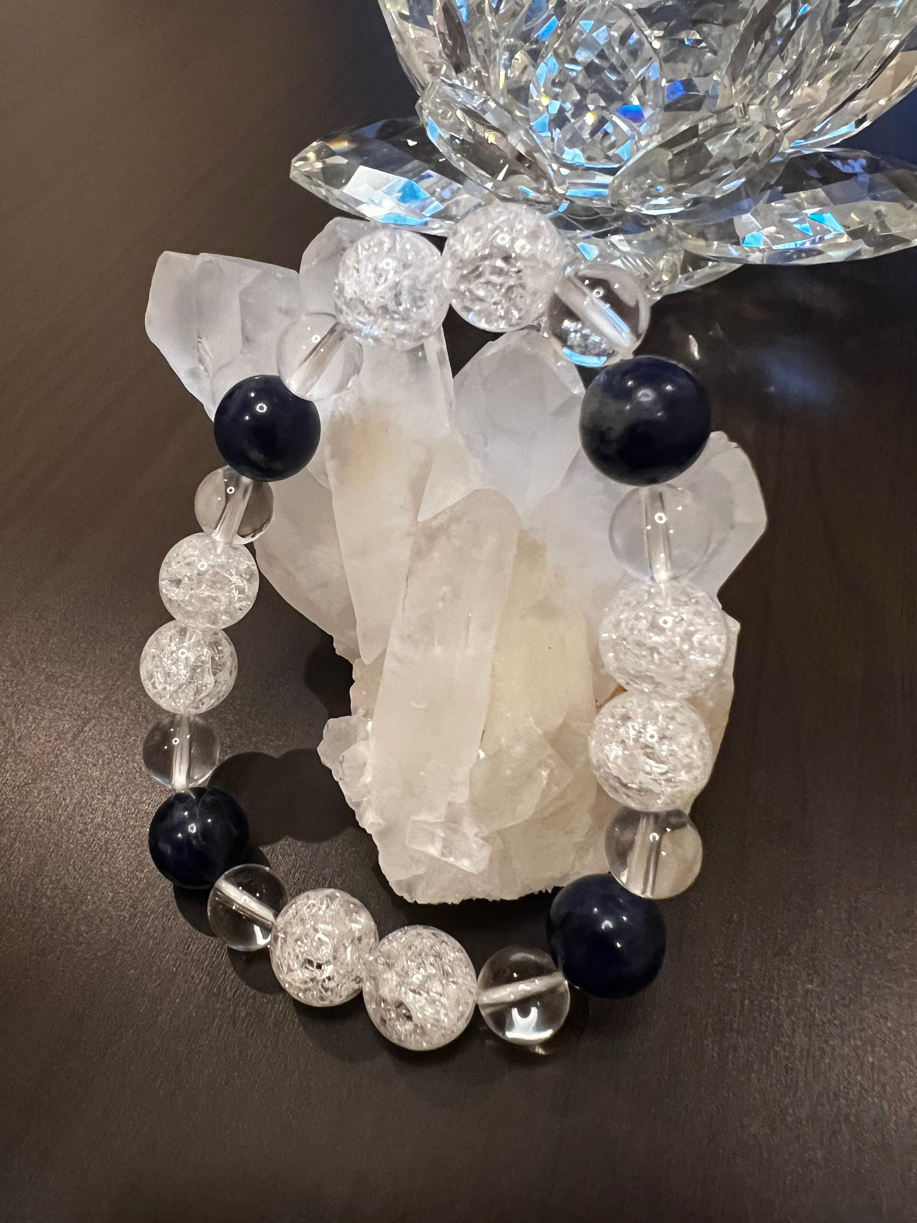 ソーダライト、クラック水晶、水晶の美しい組み合わせが、あなたの日常に知恵と力強いエネルギーをもたらすことでしょう。