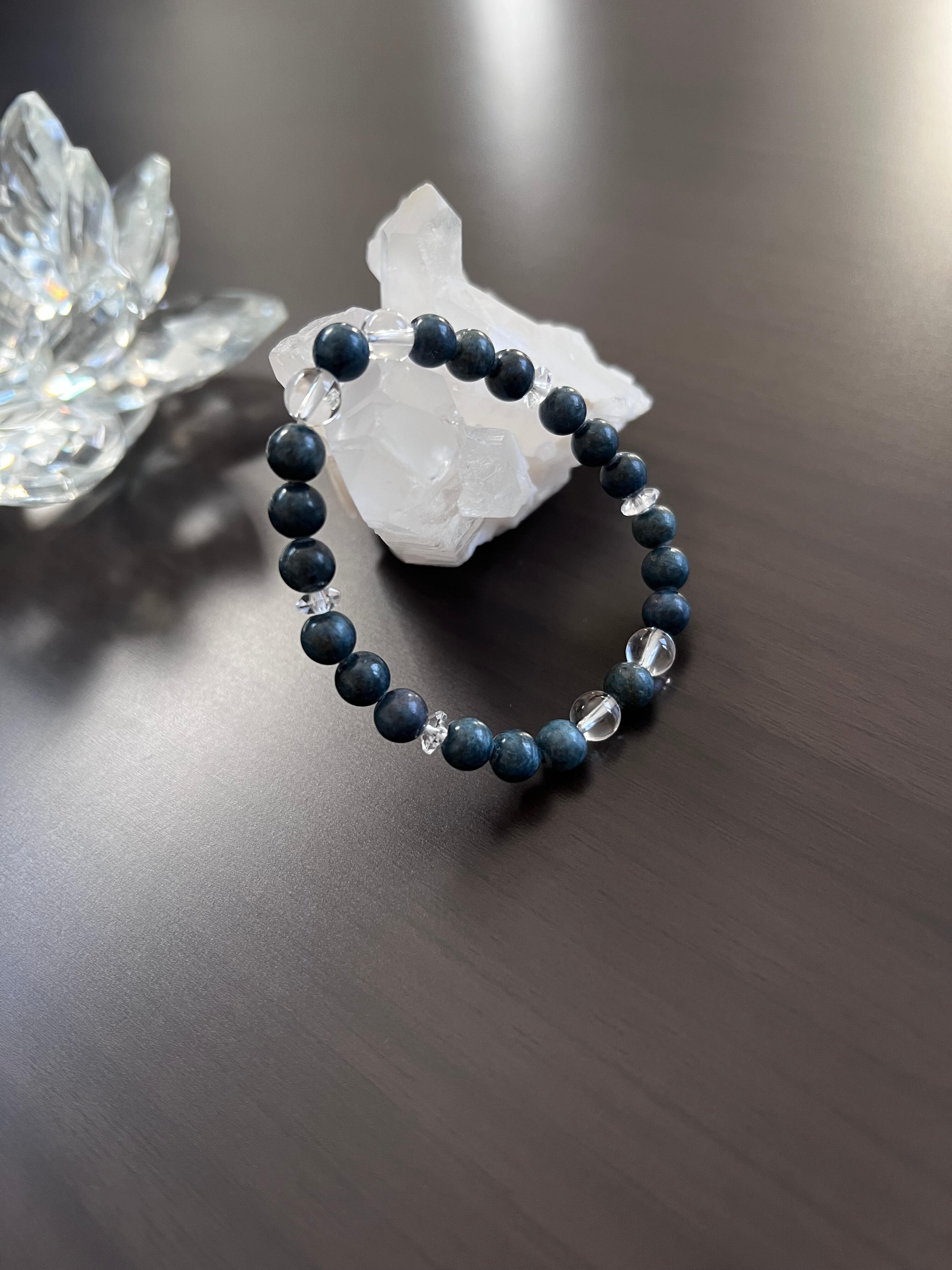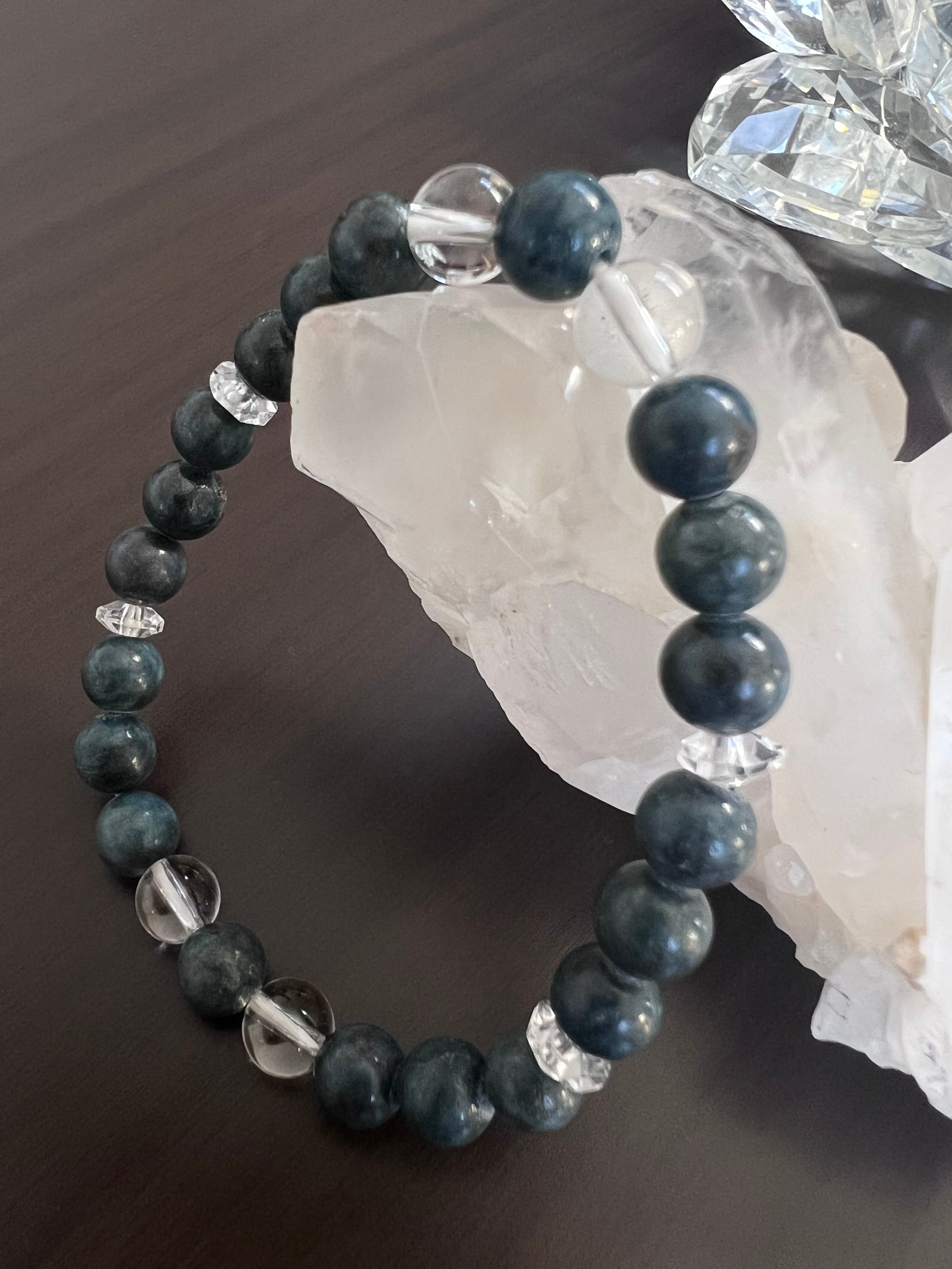 このブレスレットは、直感力、心と体のバランス、創造性を求める方に最適です! ルビーカイヤナイト、水晶、20面カット水晶の美しい調和が、あなたの日常にエネルギーとインスピレーションをもたらしますこと間違いありません。