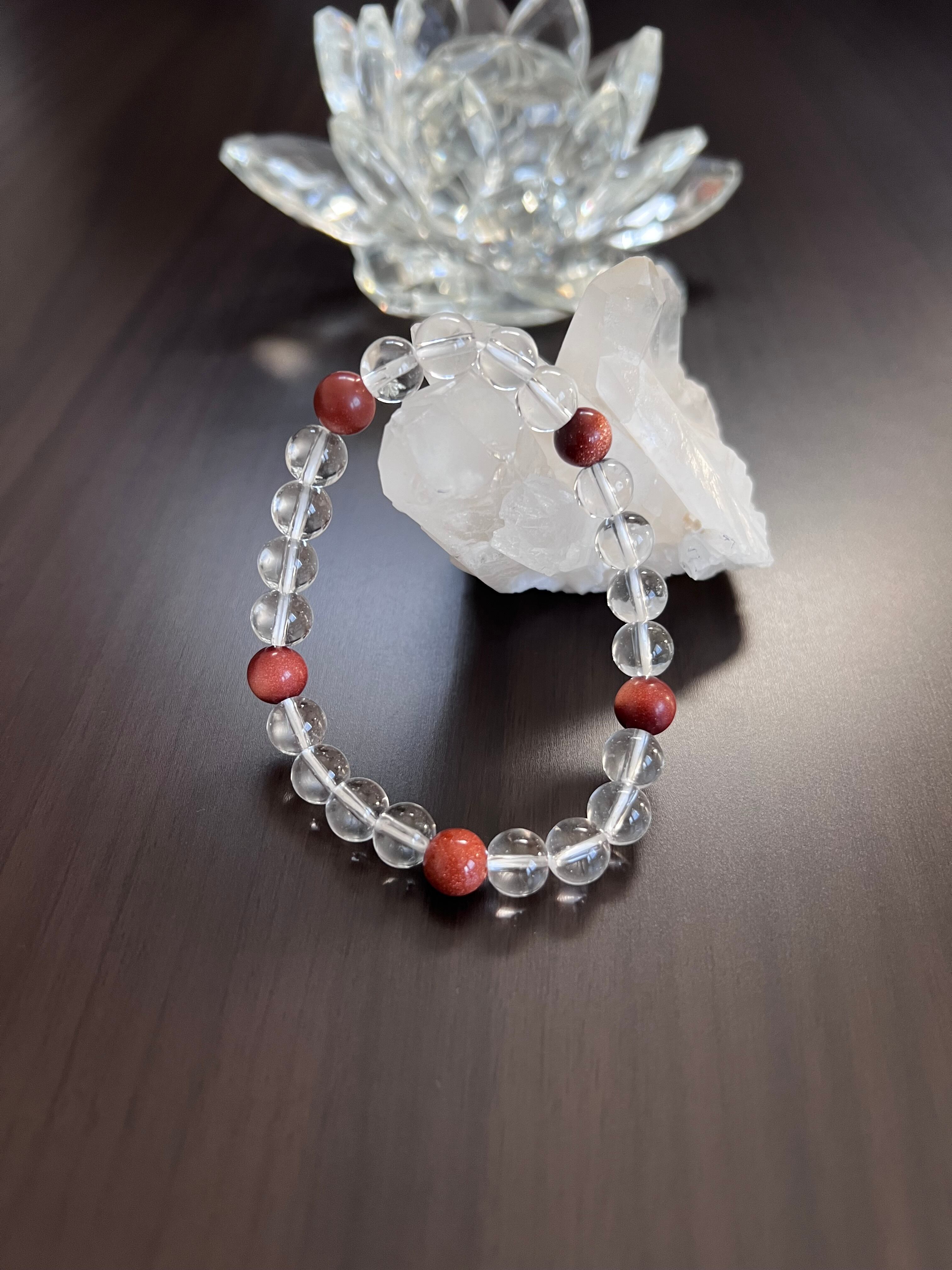 このブレスレットは、希望、ポジティブなエネルギー、そして自己啓発を求める方に最適です! ゴールドストーンと水晶の美しい調和が、あなたの日常に明るさとエネルギーをもたらすことでしょう。