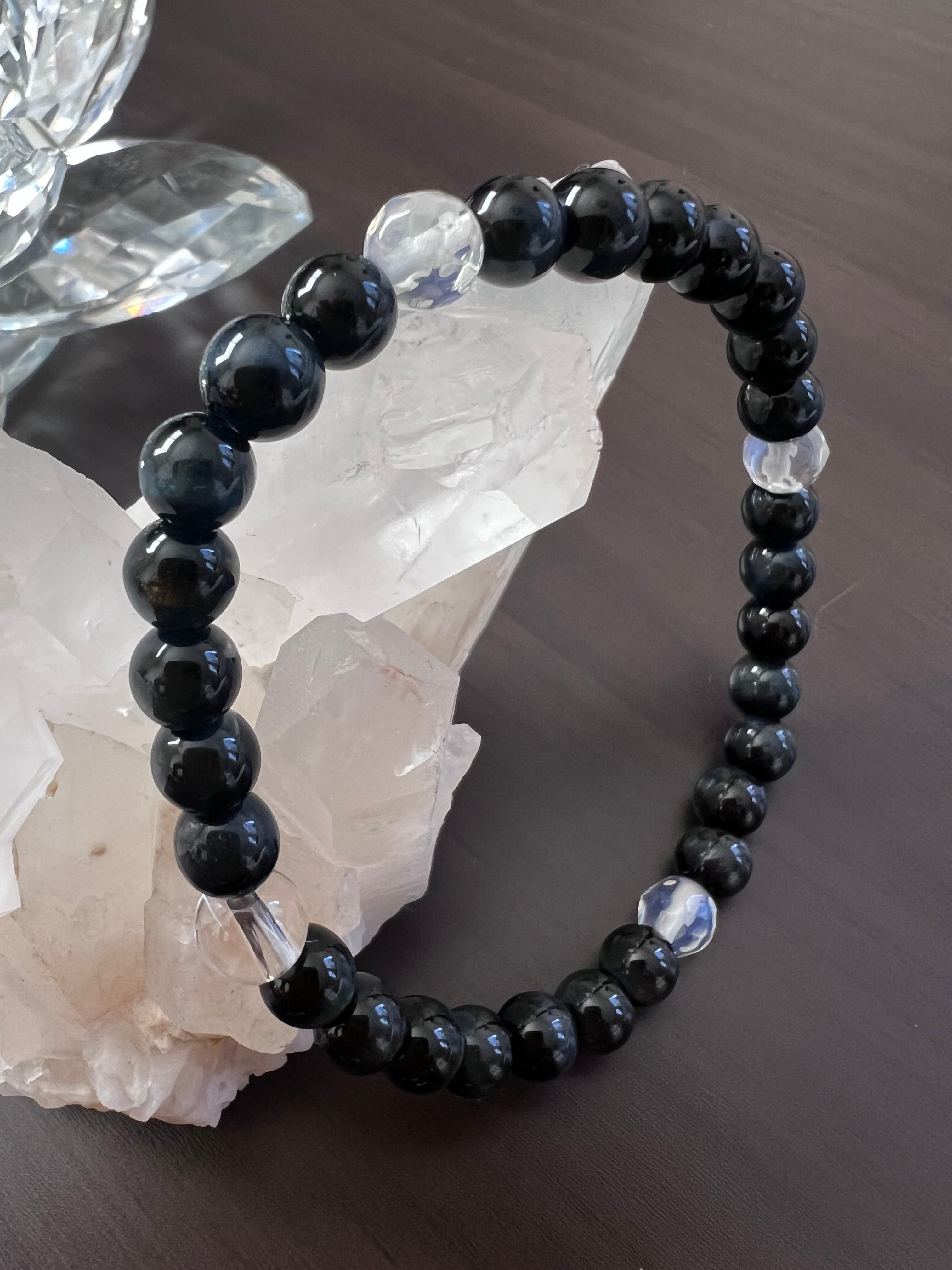 このブレスレットは、自己信頼、創造力、内面の清らかさを求める方に最適です! ブルータイガーアイ、オパール、水晶の美しい調和が、あなたの日常に力強さと穏やかさをもたらすことでしょう。
