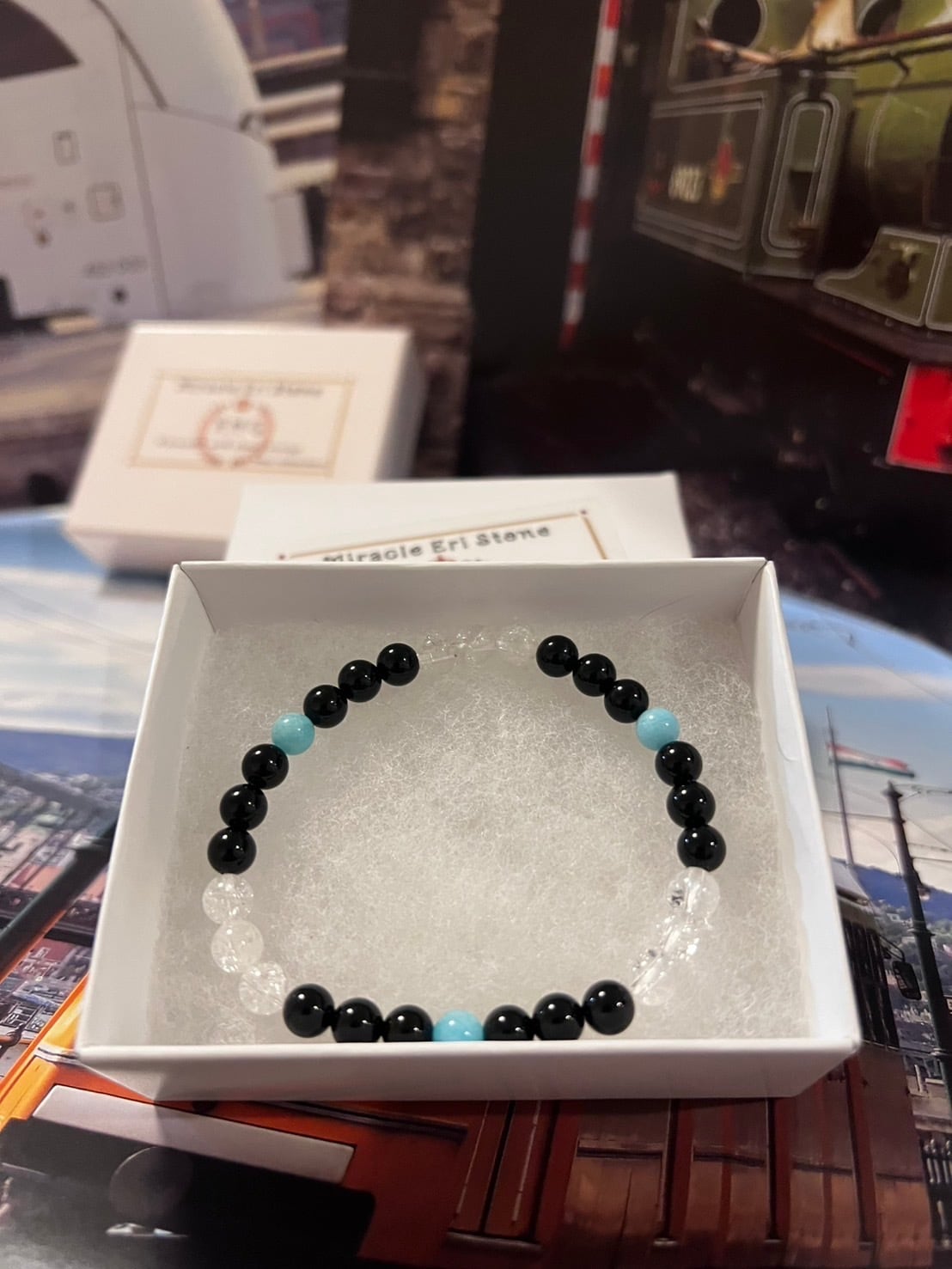 このブレスレットは、心の平穏、自己防衛、癒しを求める方に最適です! オニキス、クラック水晶、アマゾナイトの美しい調和が、あなたの日常に安全感と心地よさをもたらすことでしょう。