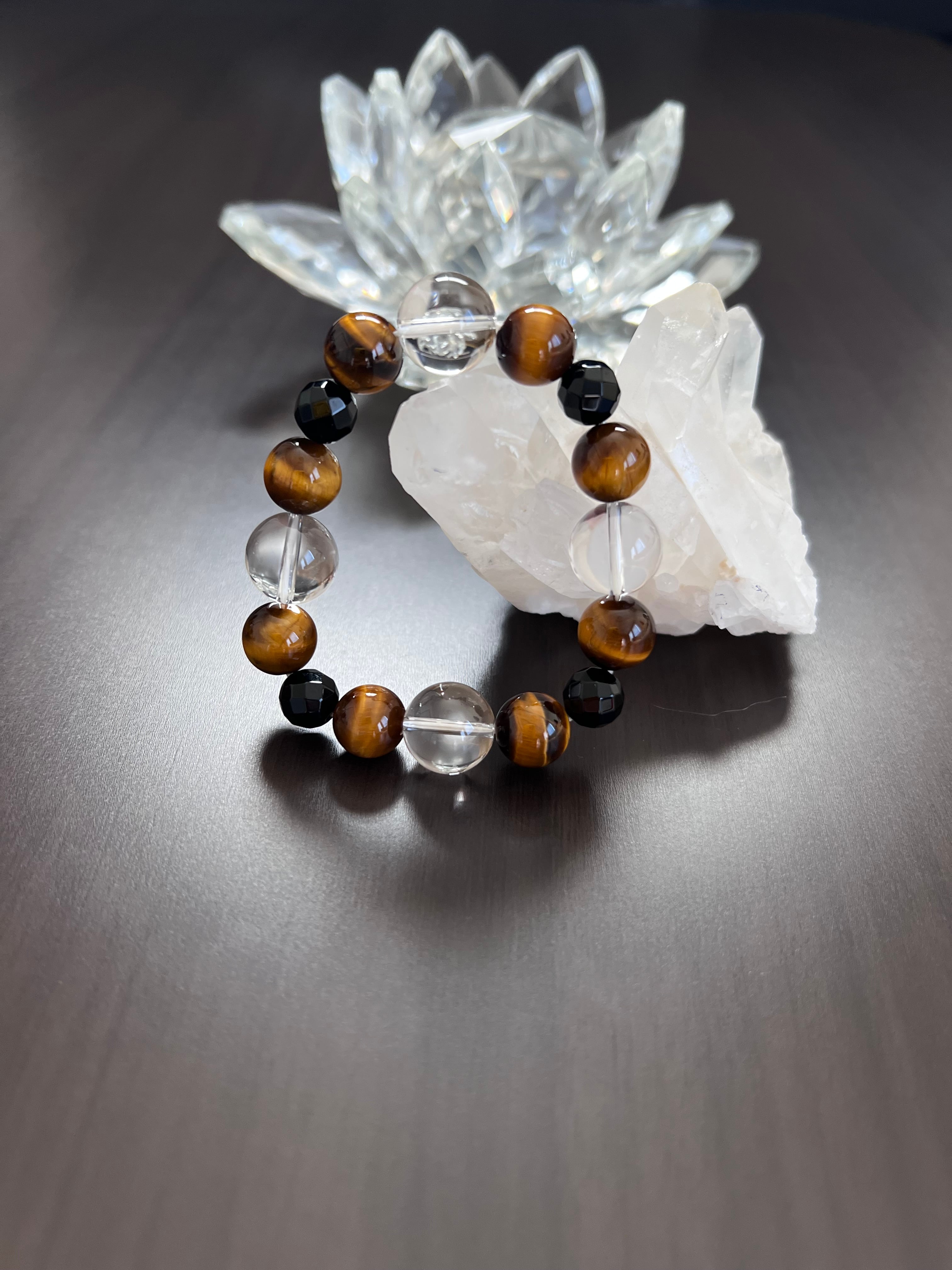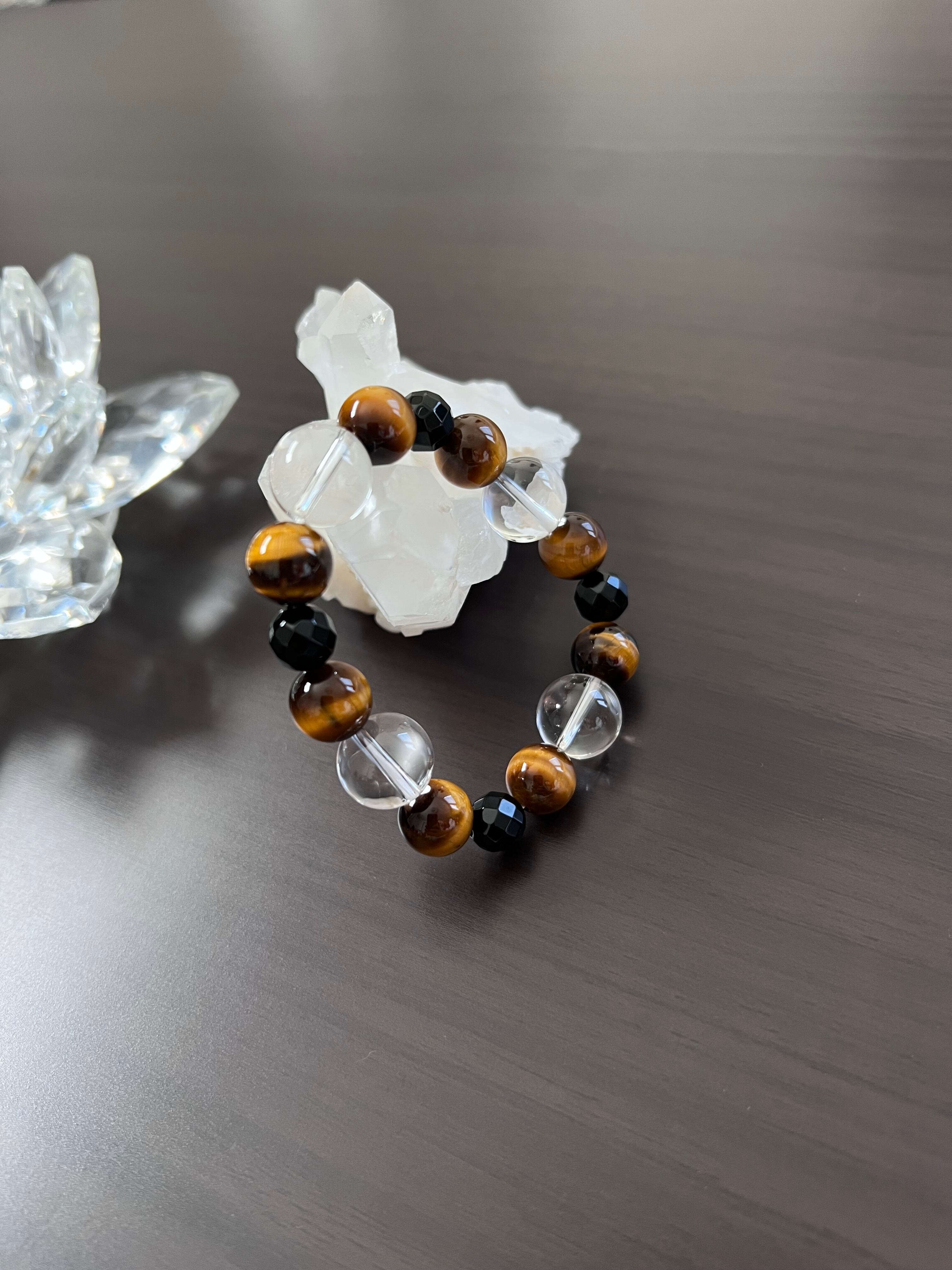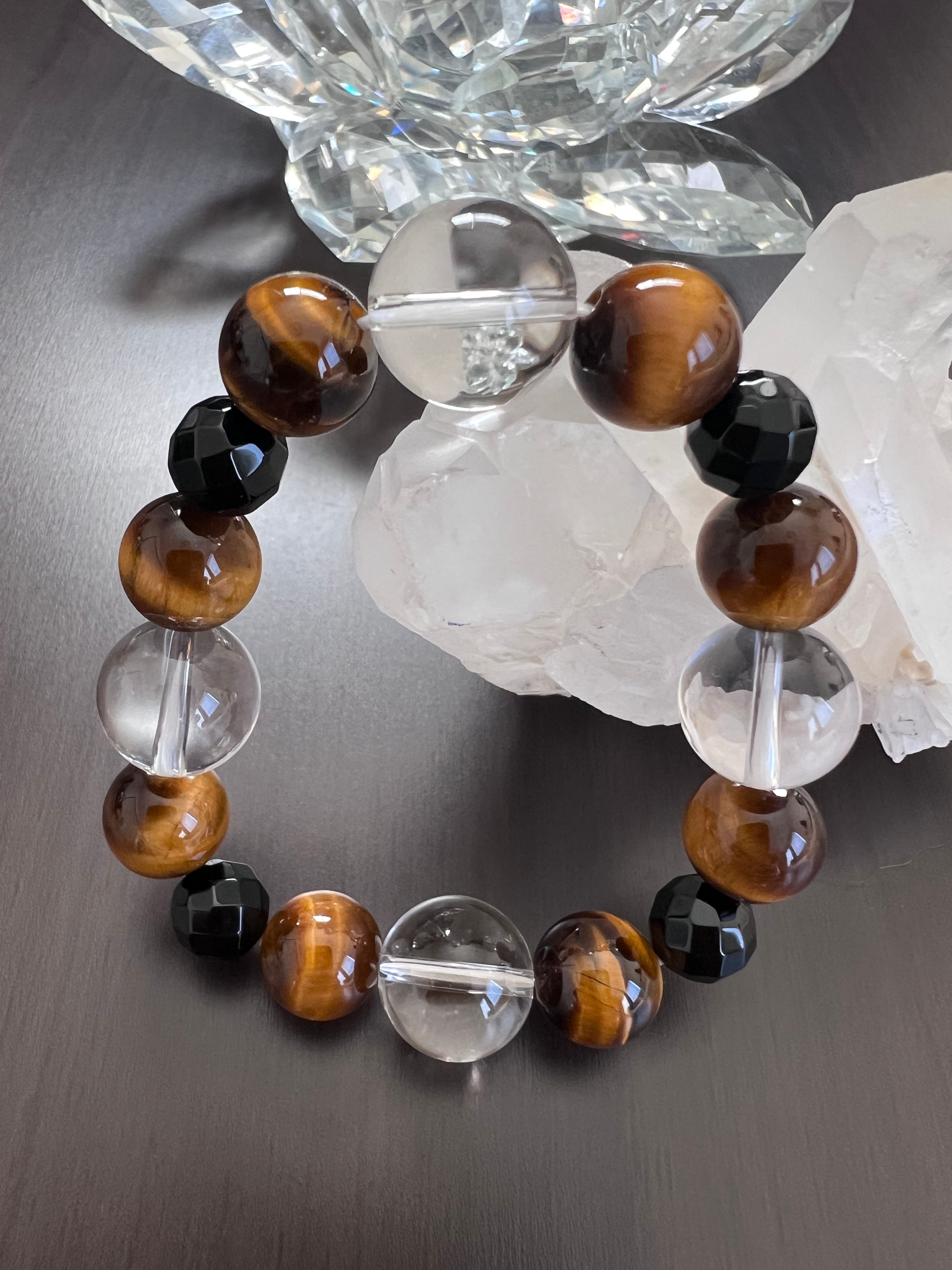 タイガーアイ、ブラックトルマリン、水晶の美しい調和が、あなたの日常に安心感と活力をもたらすことでしょう。