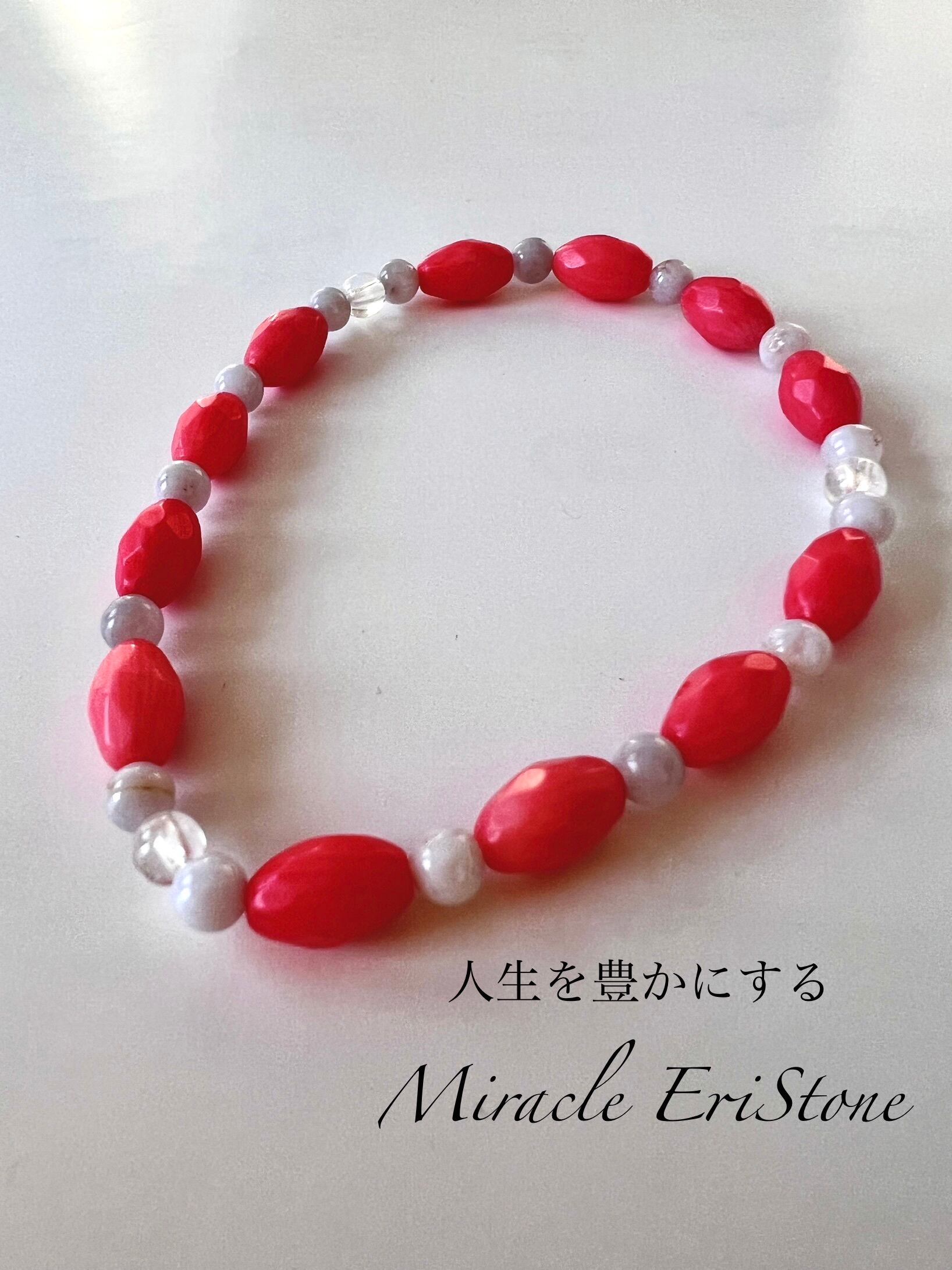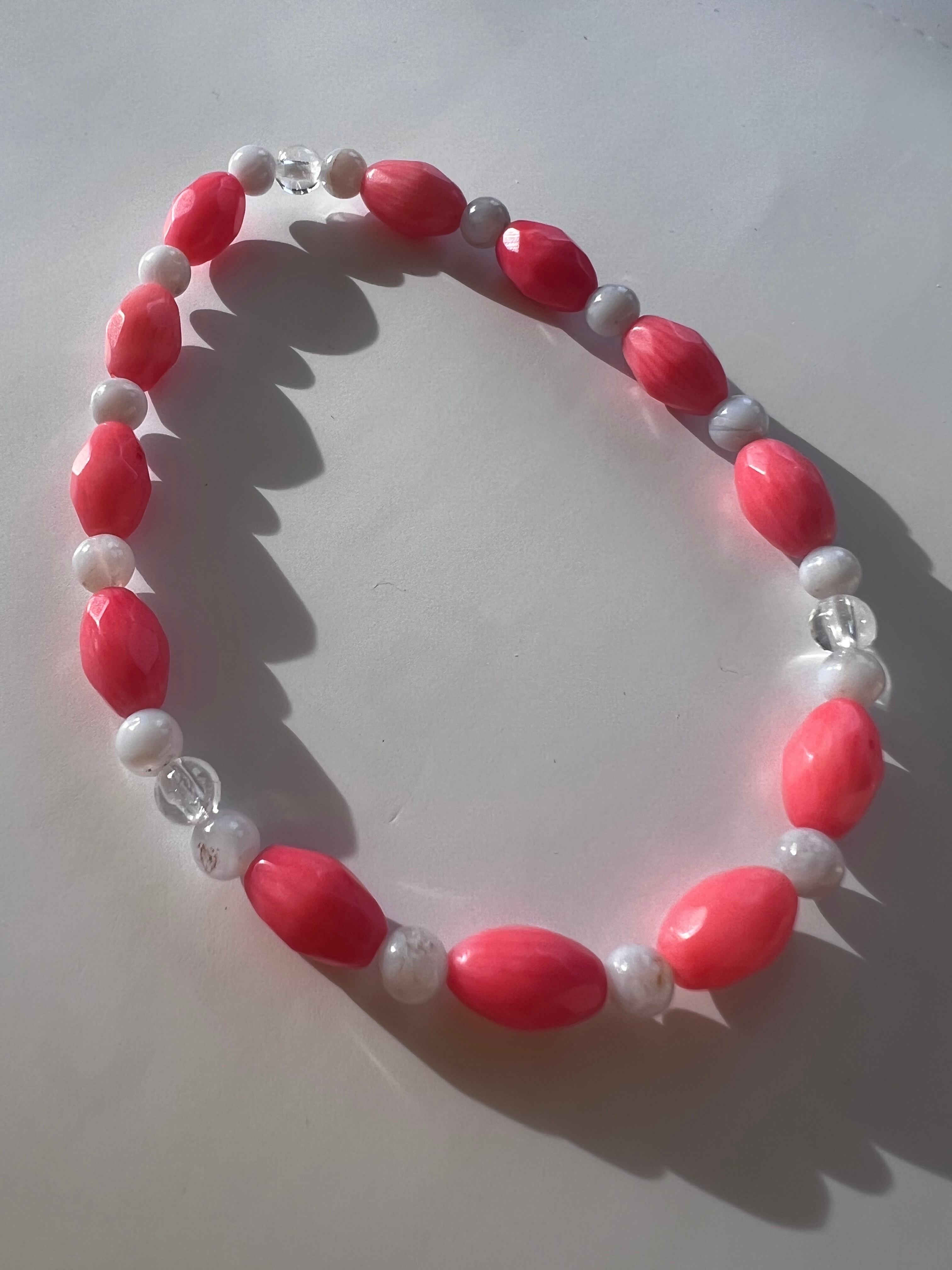 このブレスレットは、心の温もりやコミュニケーション力を高めたい方に最適です。珊瑚とブルーレースアゲートの美しいコントラストが、あなたの日常に深い癒しと喜びをもたらすことでしょう!