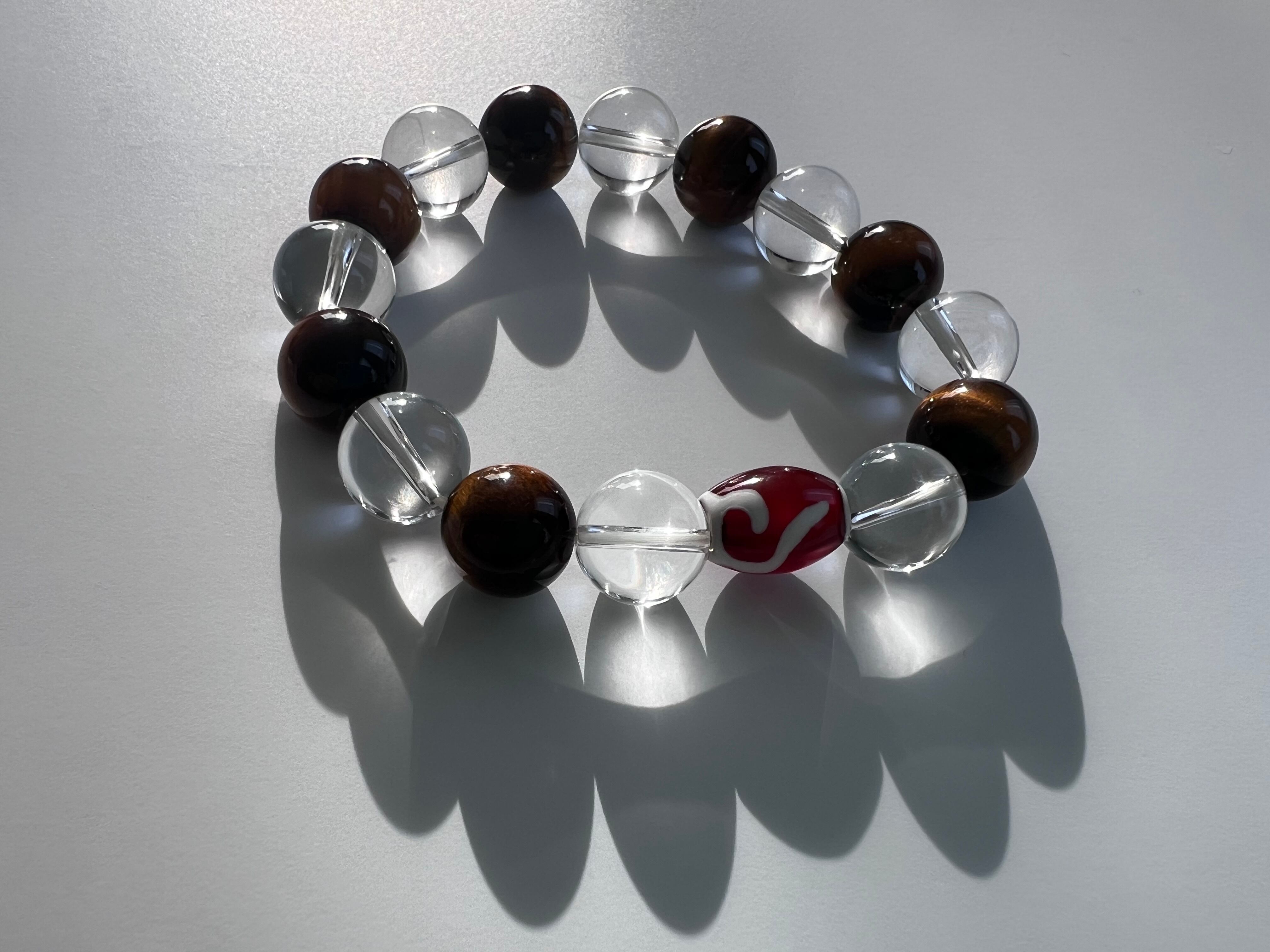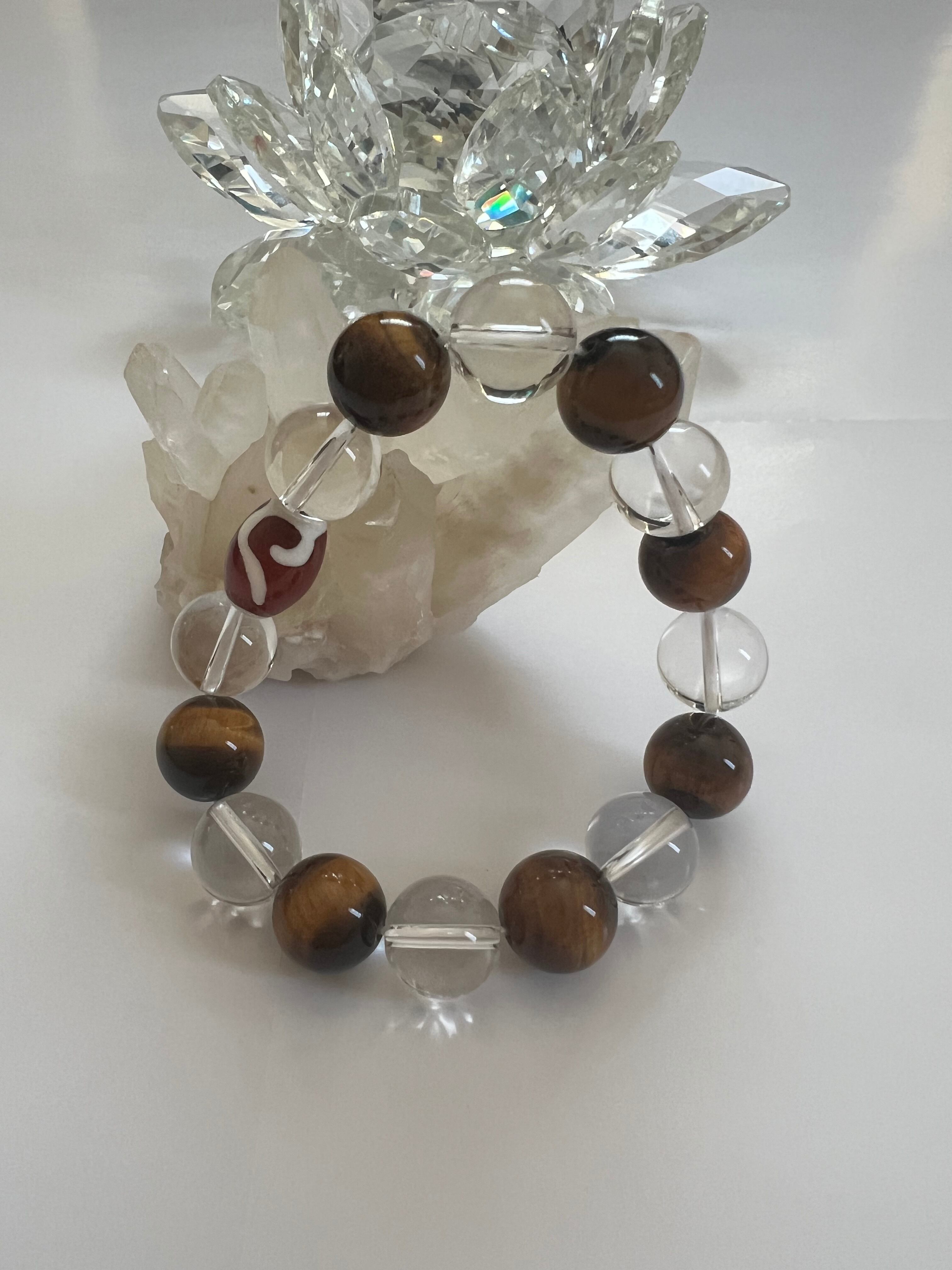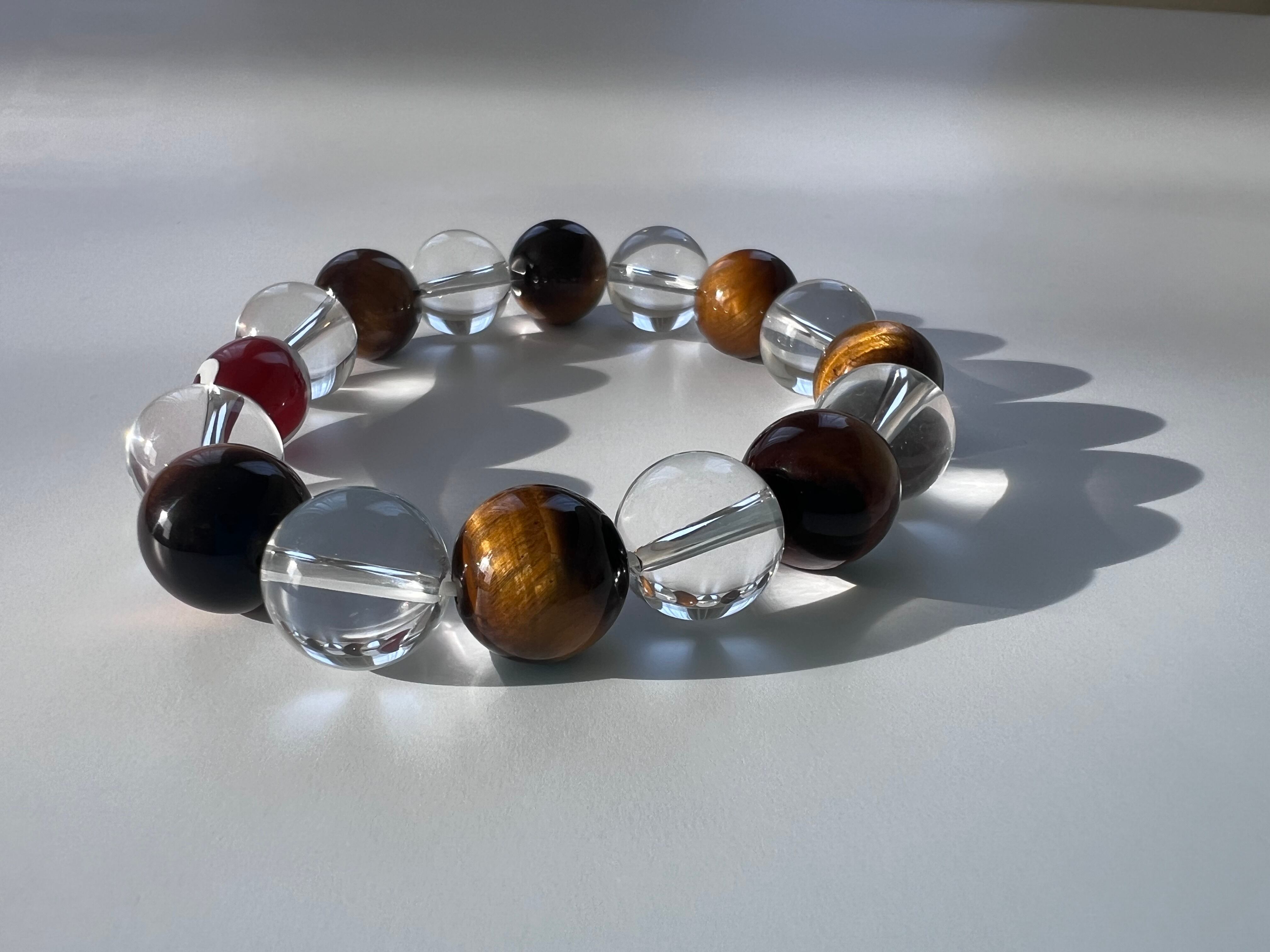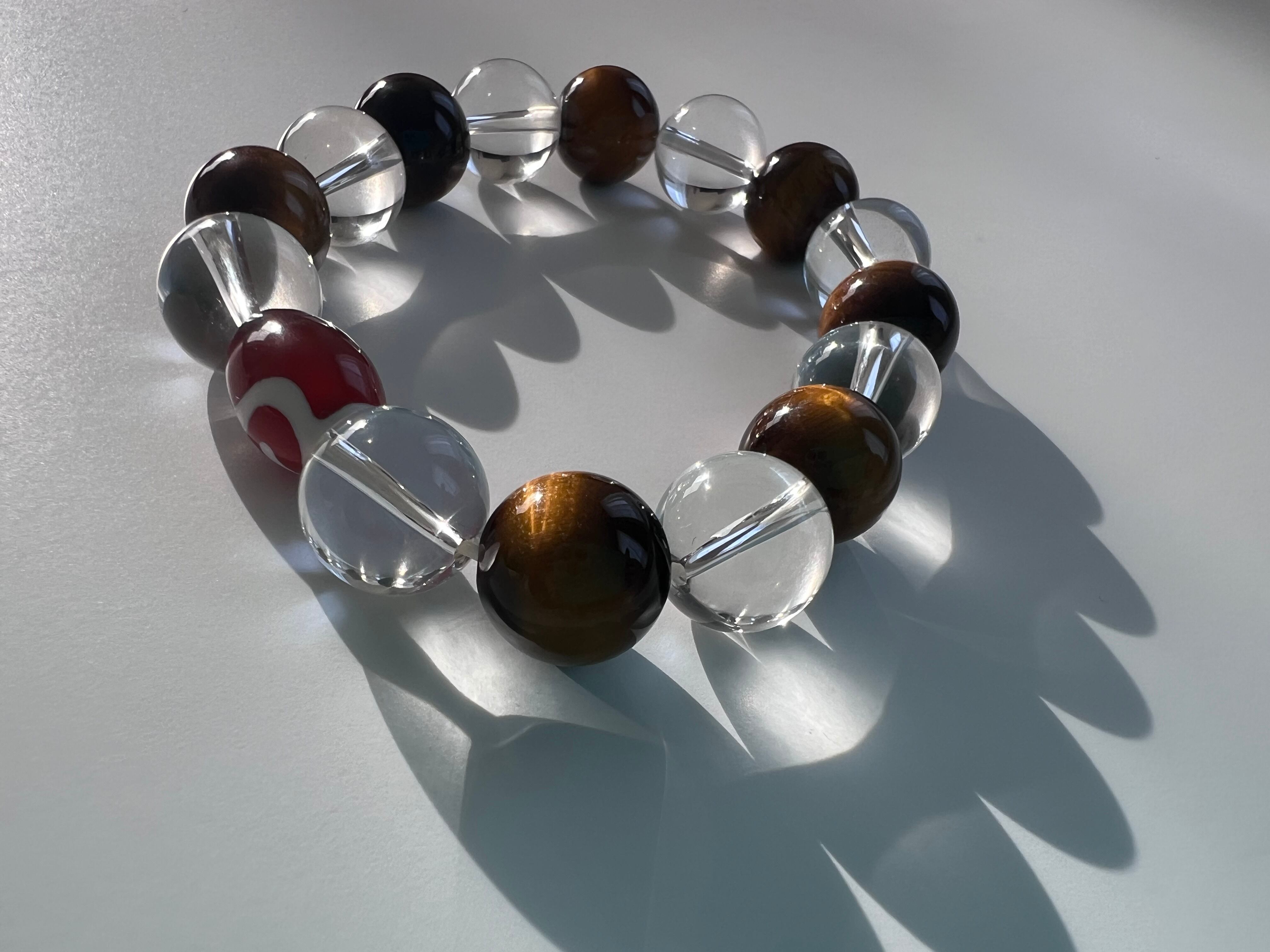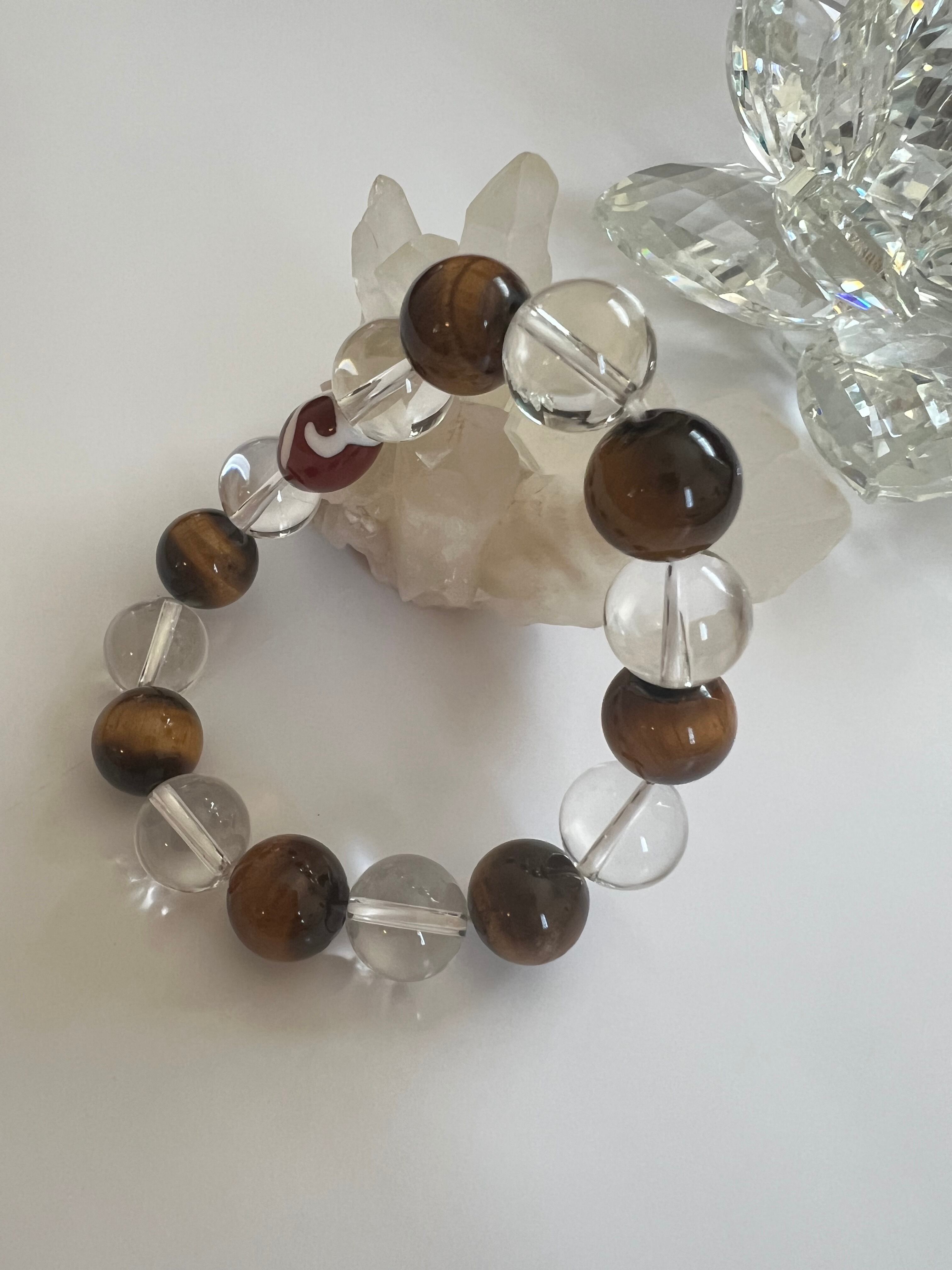 このブレスレットは、内面的な強さや幸運を求める方に最適です。タイガーアイの力強さ、水晶の透明感、如意天珠の神秘が、あなたの日常に豊かさと安心をもたらすことでしょう!