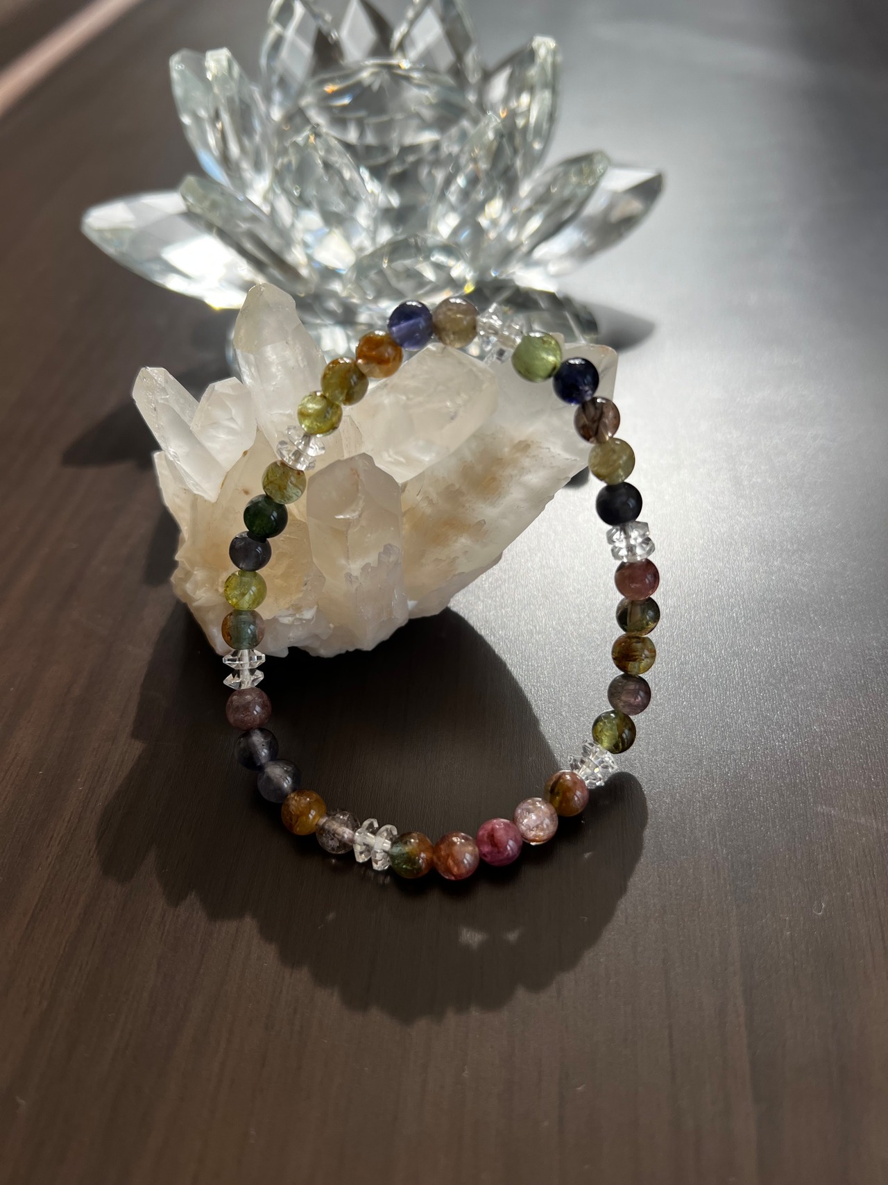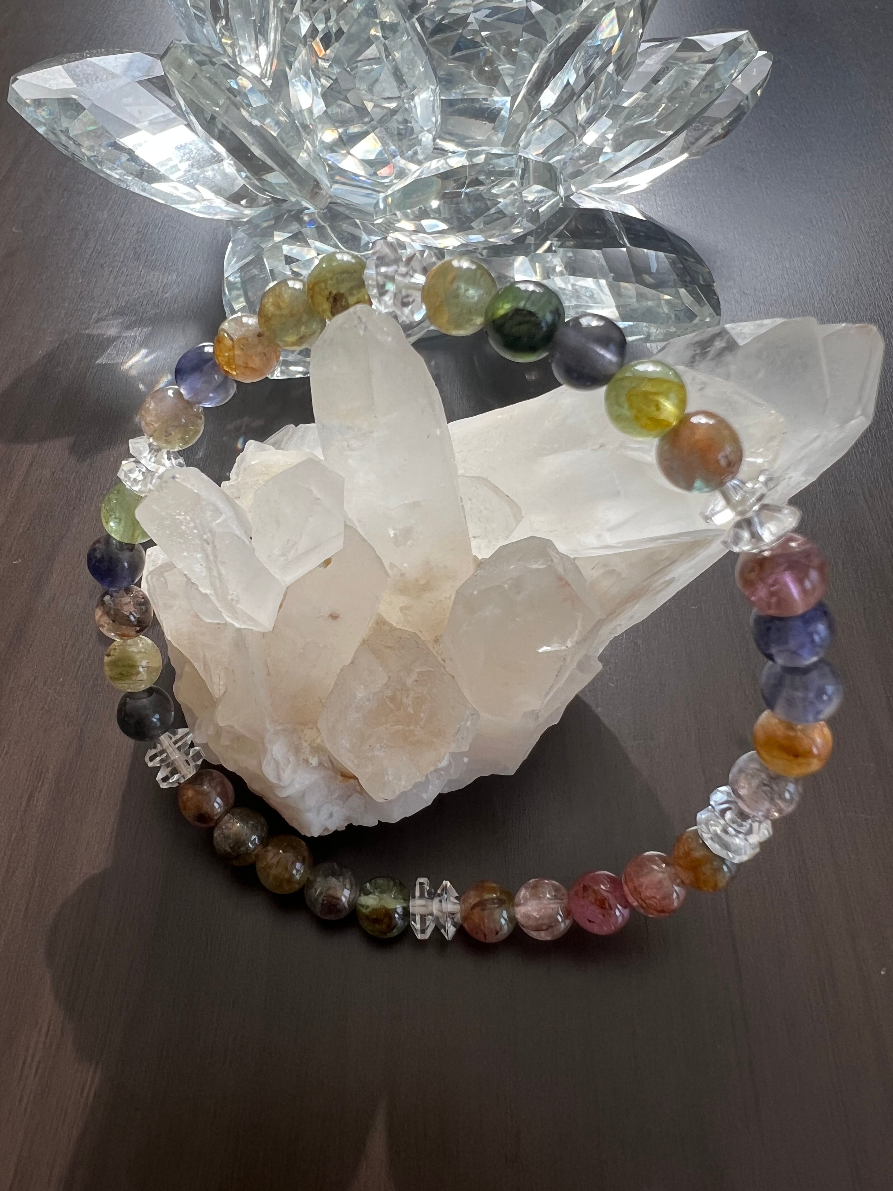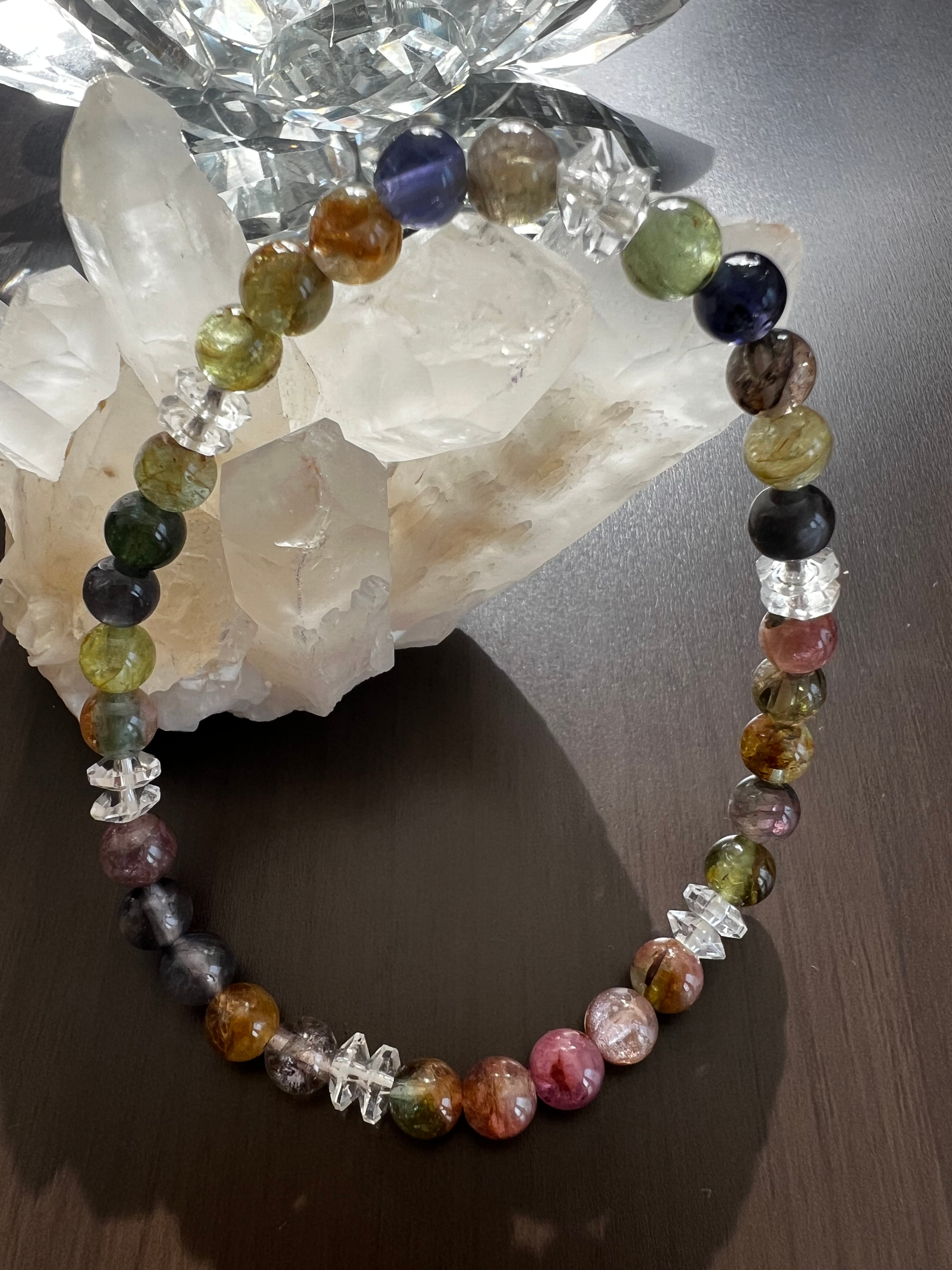 このブレスレットは、心の癒しや調和を求める方に最適です。ミックストルマリンの多様性、20面カット水晶の煌めきが、あなたの日常に明るさと幸せをもたらすことでしょう!