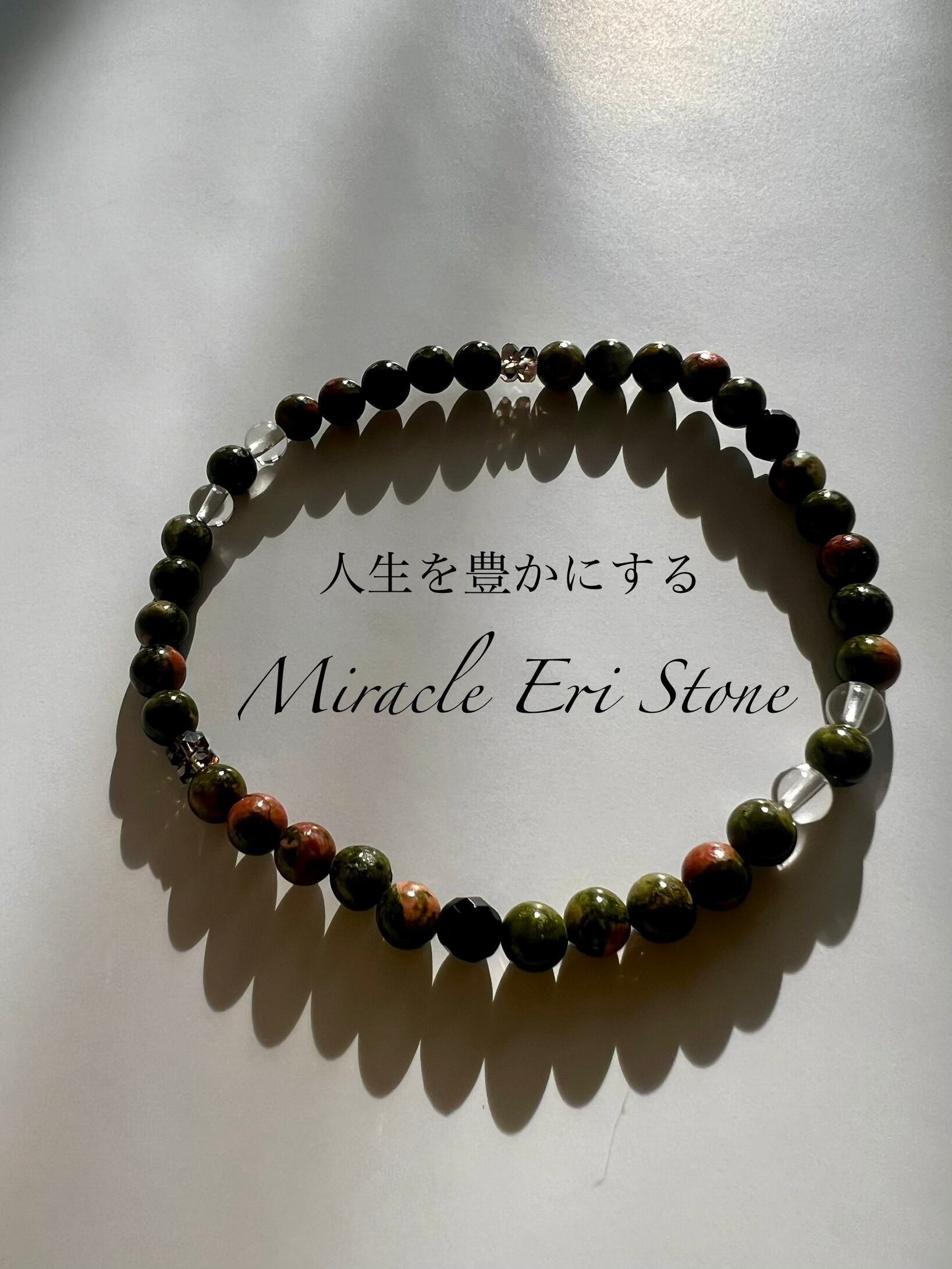 ⚫︎ユナカイト:美しいピンクと緑の模様を持つユナカイトは、心に安らぎとバランスをもたらす石です!持つ人に自己受容を促し、ポジティブなエネルギーを引き寄せてくれるでしょう!