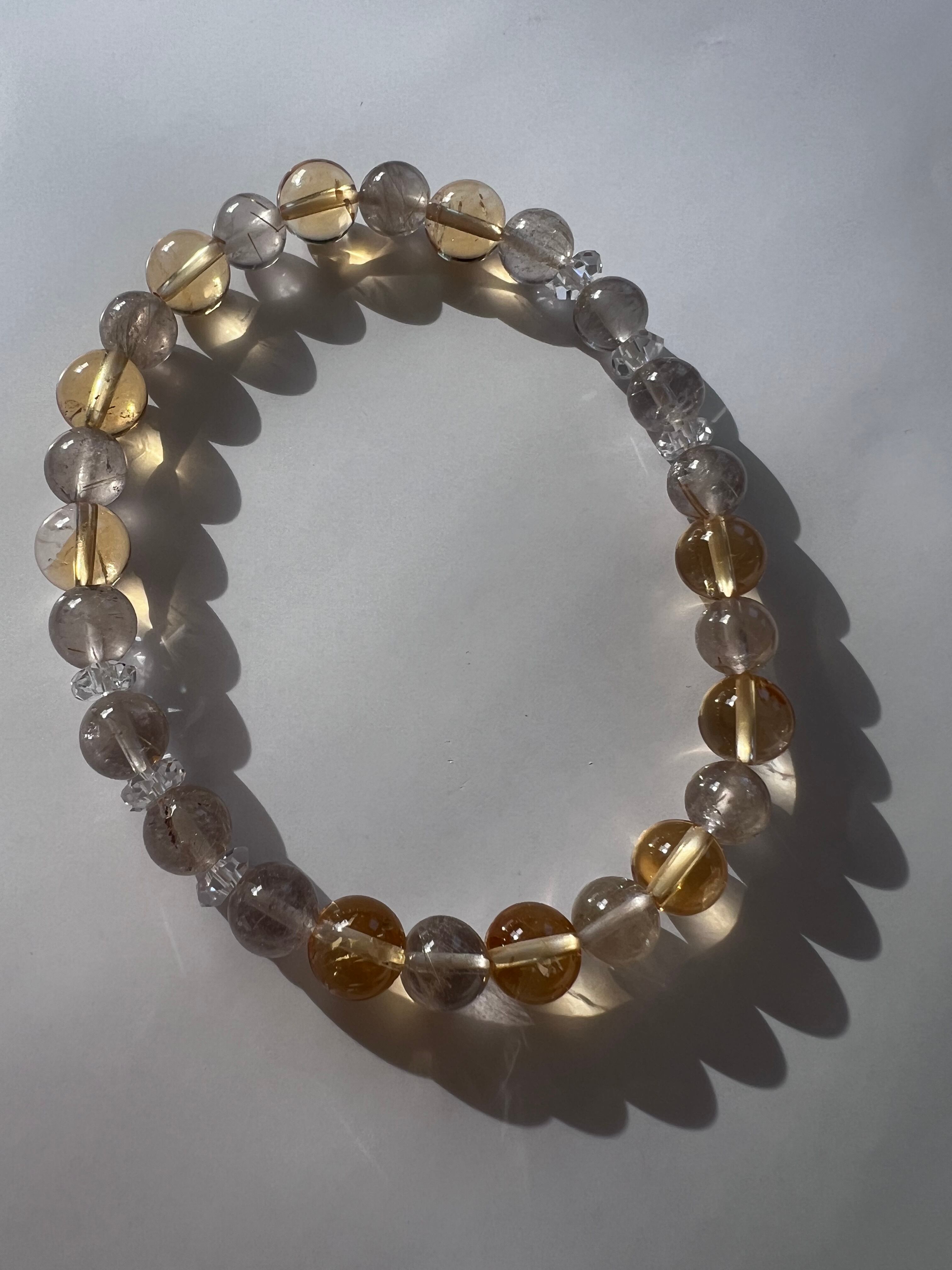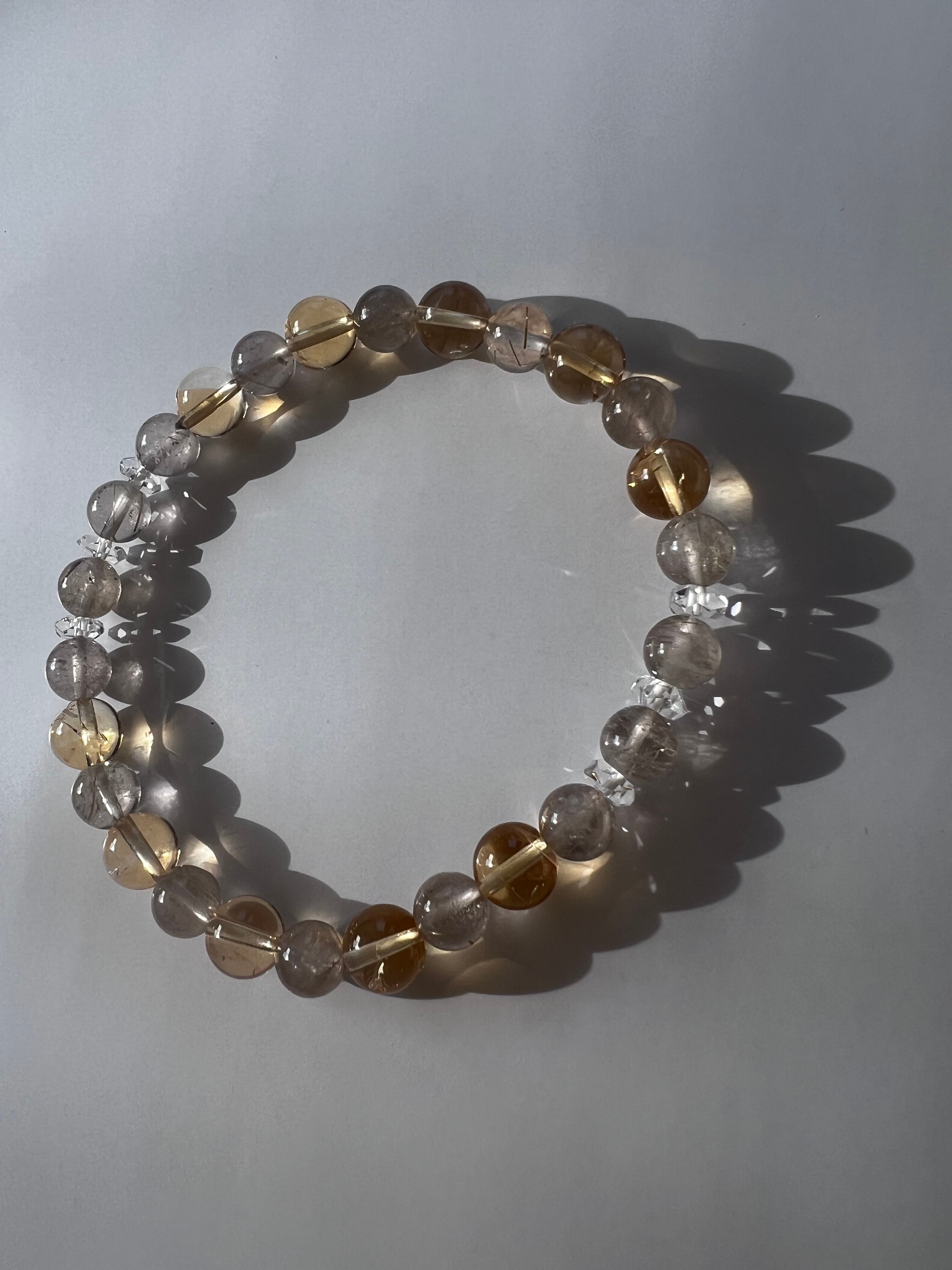 このブレスレットは、自信、成功、そしてエネルギーの増幅を求める方に最適です。ルチルクォーツの活力、シトリンの創造性、20面カット水晶のエネルギーが、あなたの日常にさらなる力強さと前進をもたらすことでしょう!
