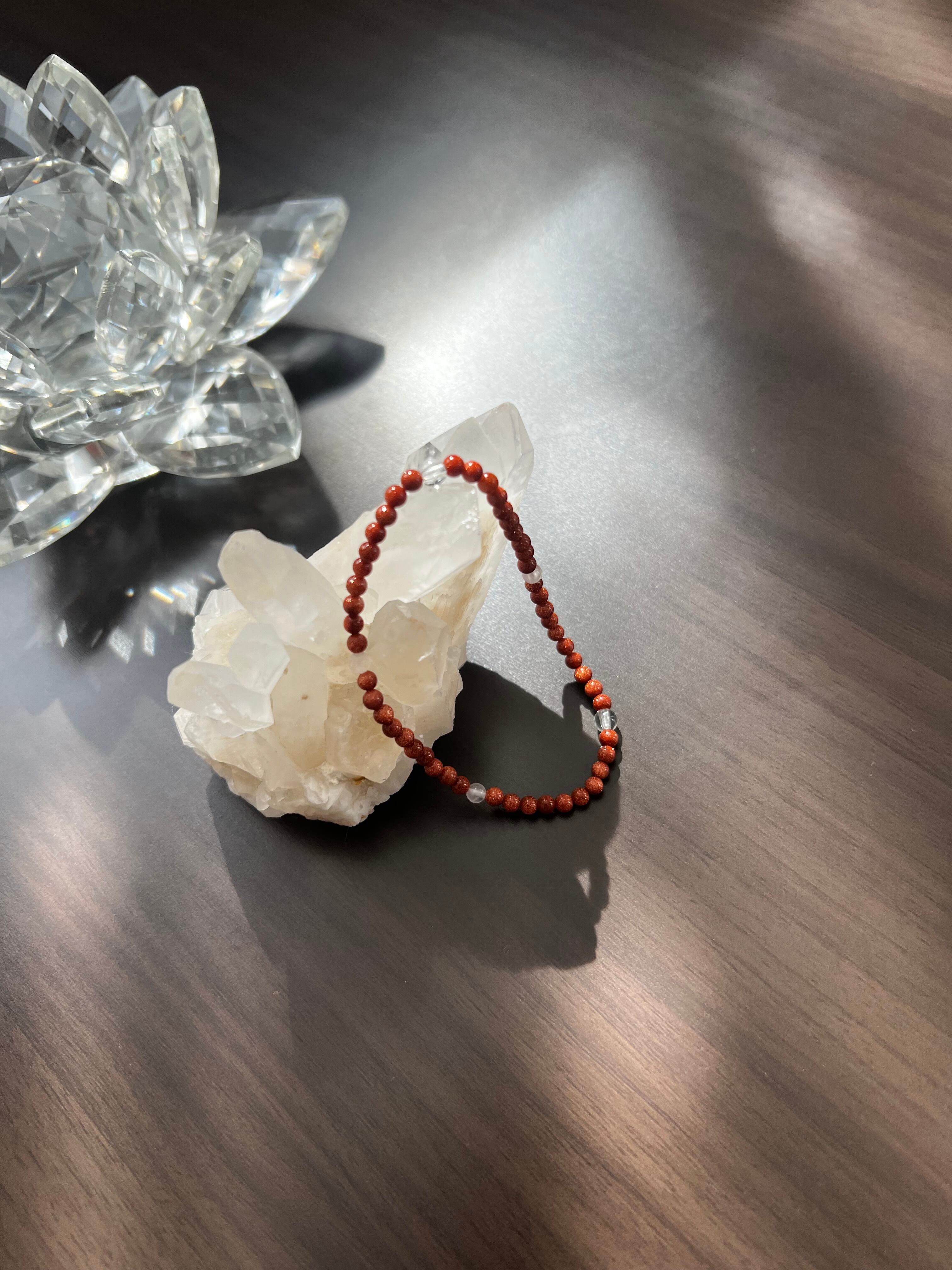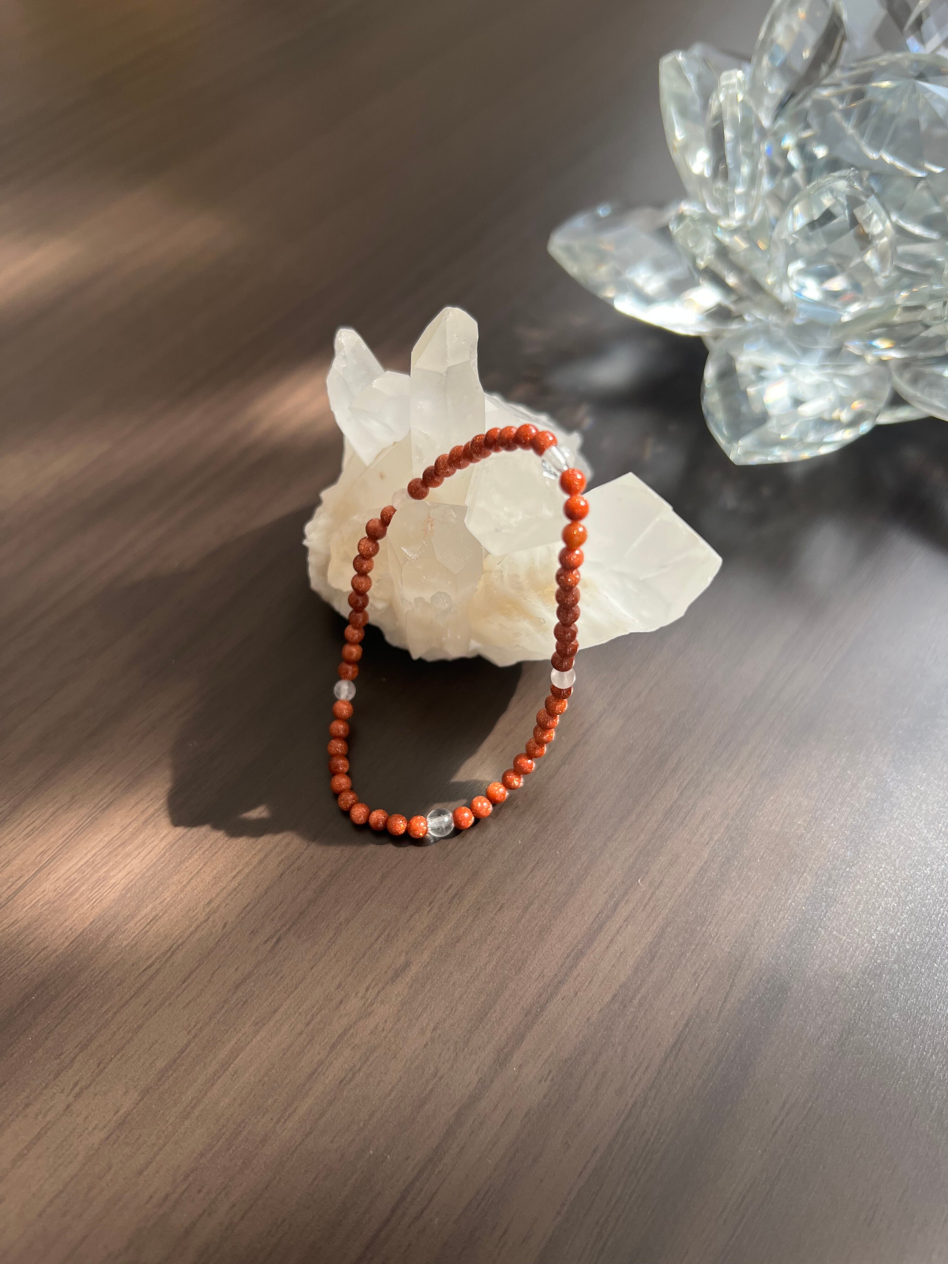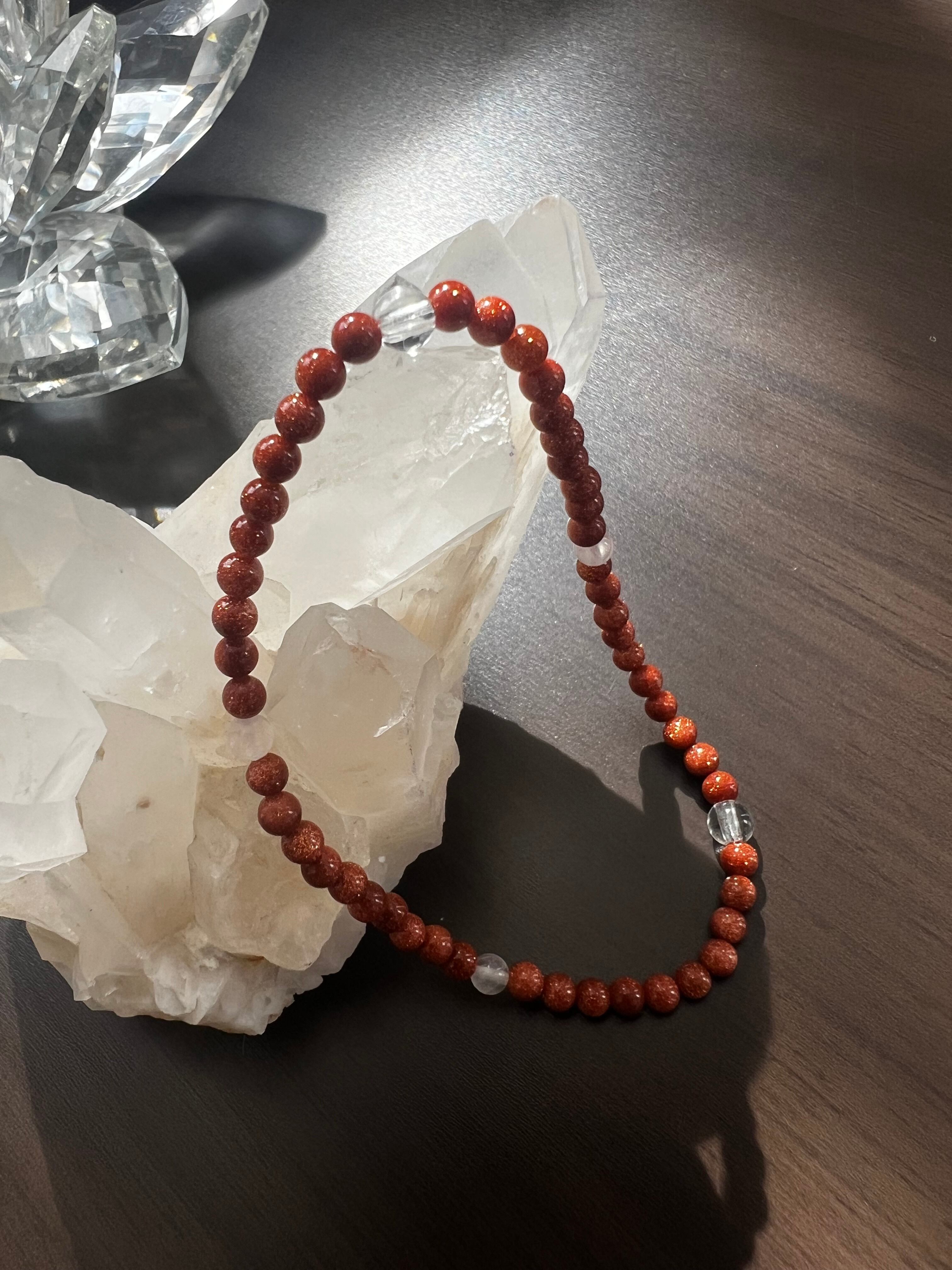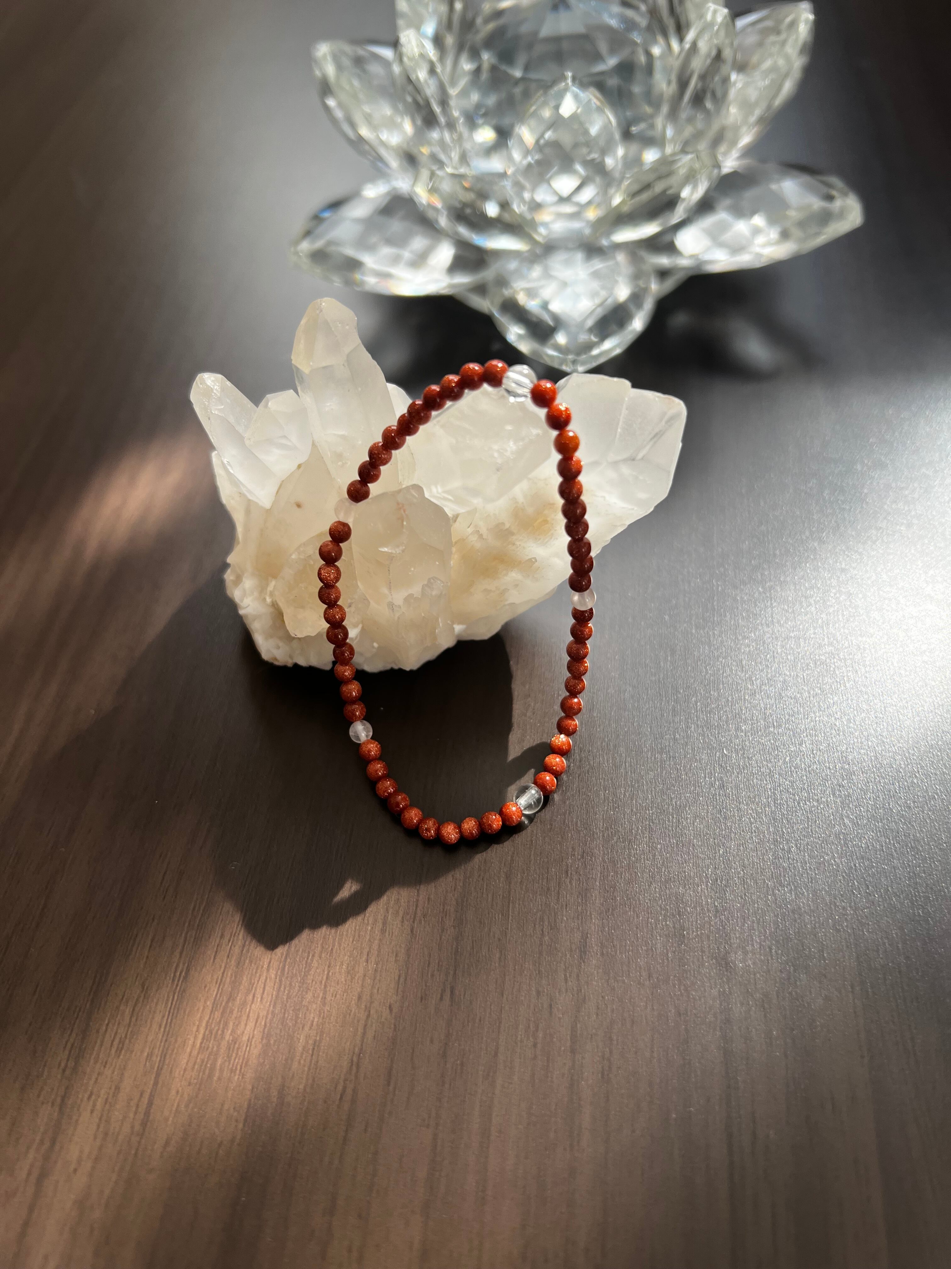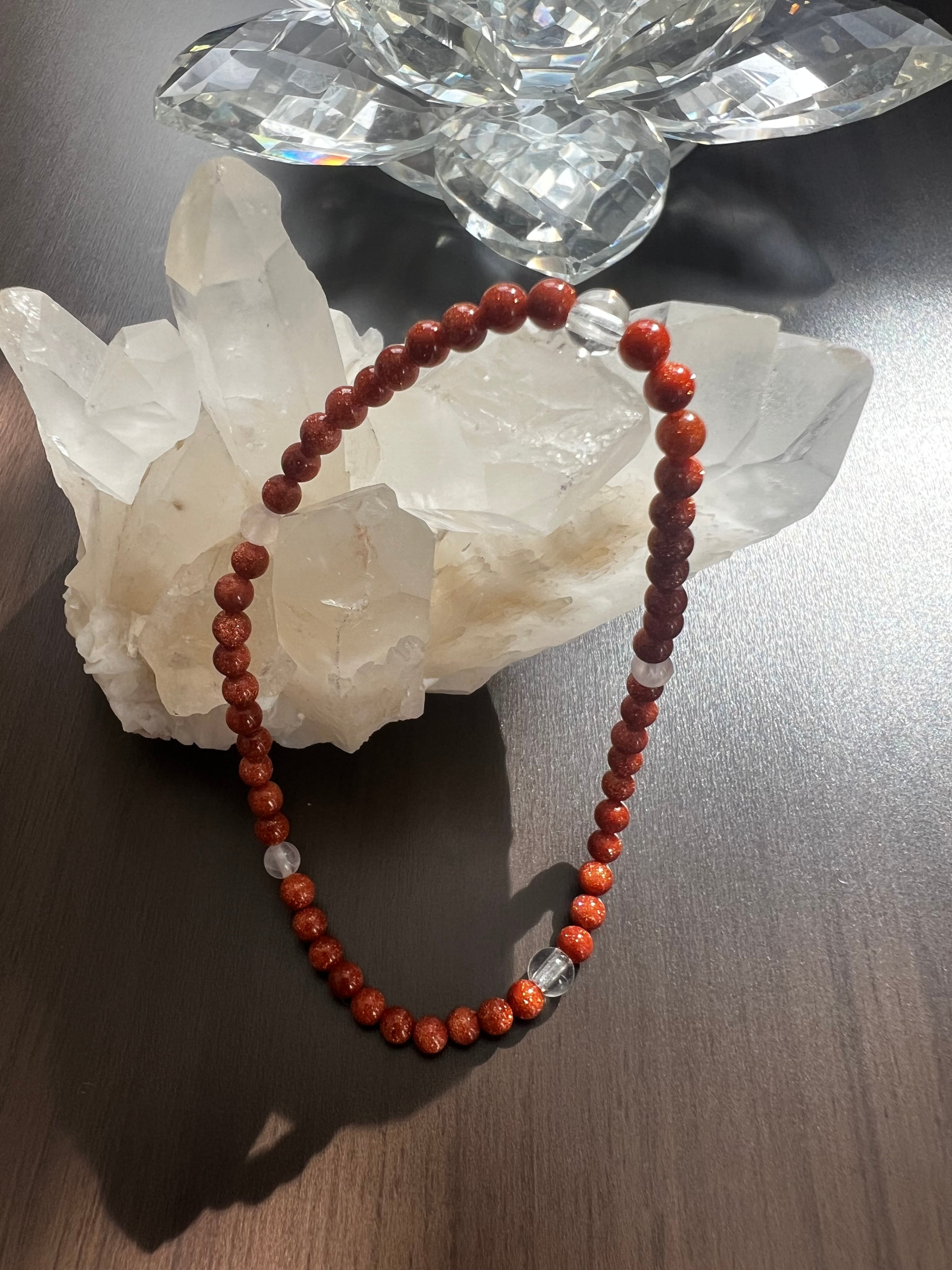 このブレスレットは、夢の実現、愛、そしてエネルギーの増幅を求める方に最適です。ゴールドストーンのポジティブなエネルギー、水晶の直感力向上、ローズクォーツの癒しが、あなたの日常にさらなる光と豊かさをもたらすことでしょう!