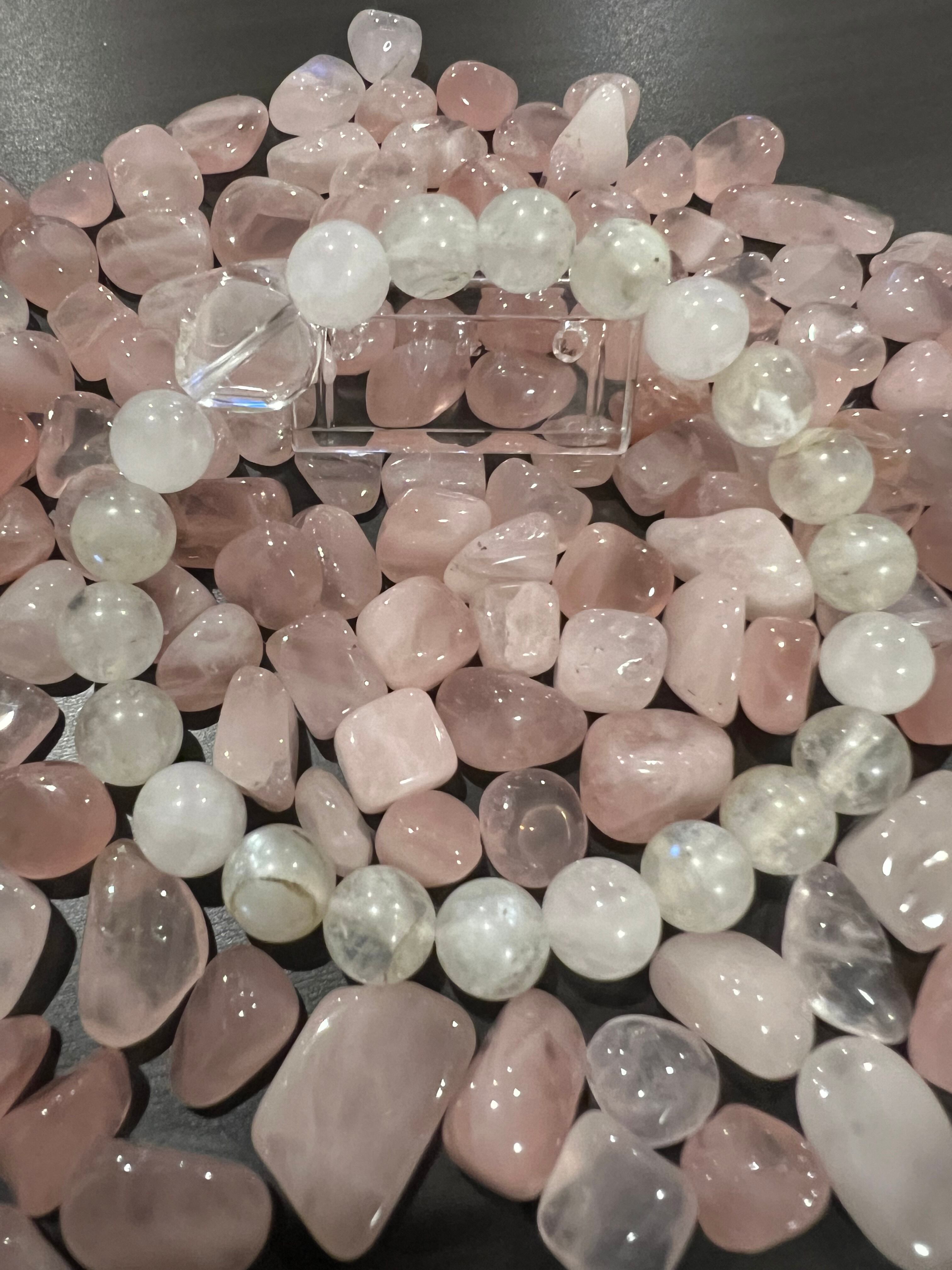 天体の月の光を象徴するムーンストーンと愛の象徴であるローズクォーツが融合した、ダブルパワーのお守りです。