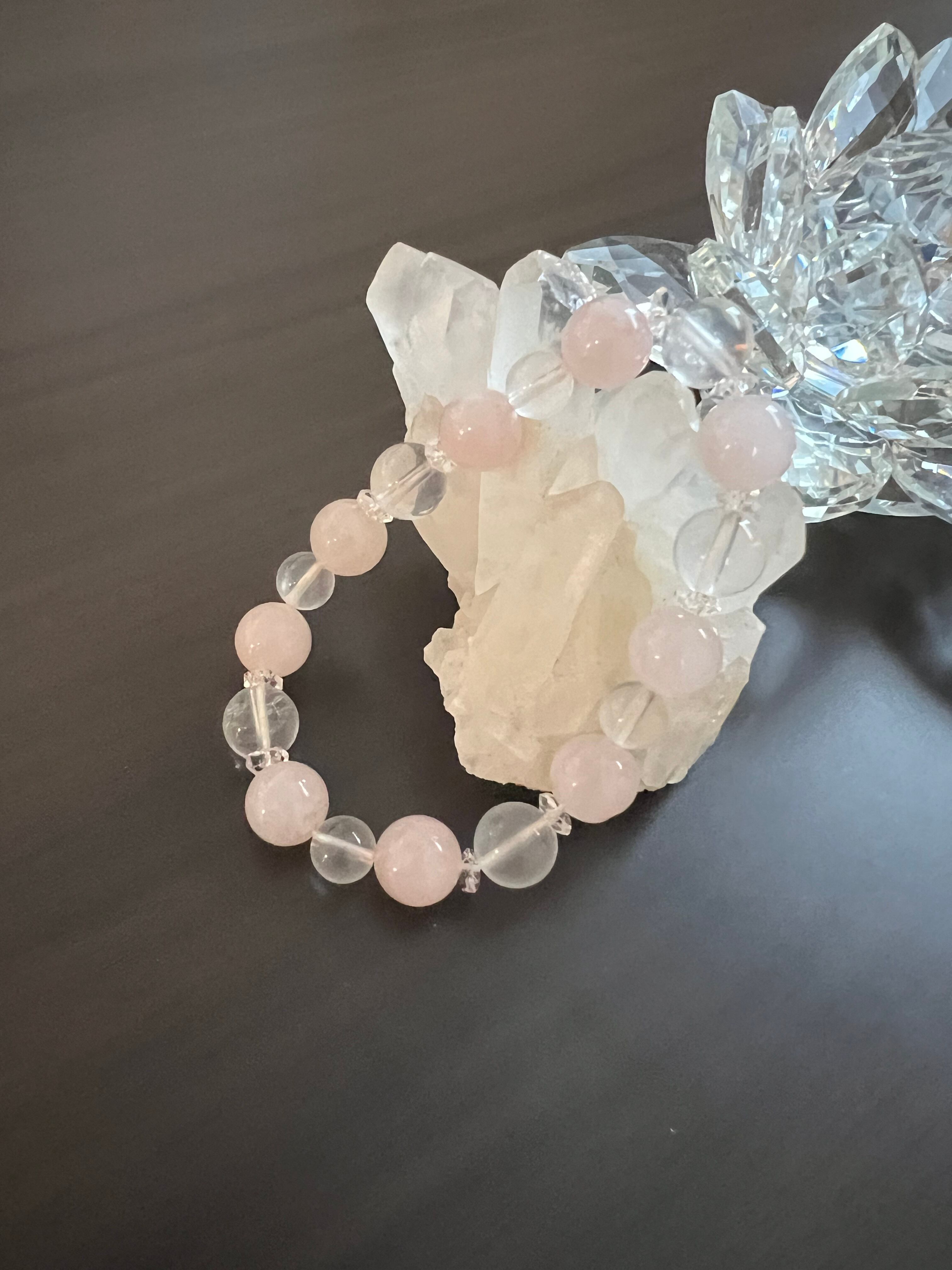 ローズクォーツ&ミルキークォーツ&20面カット水晶の組み合わせです。