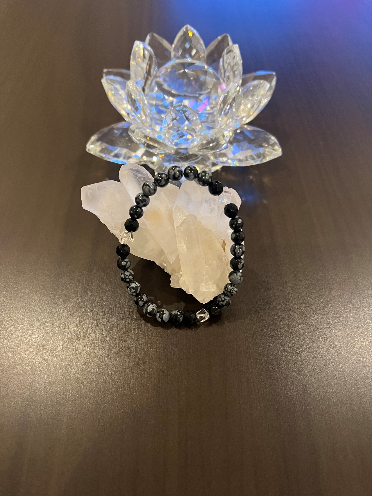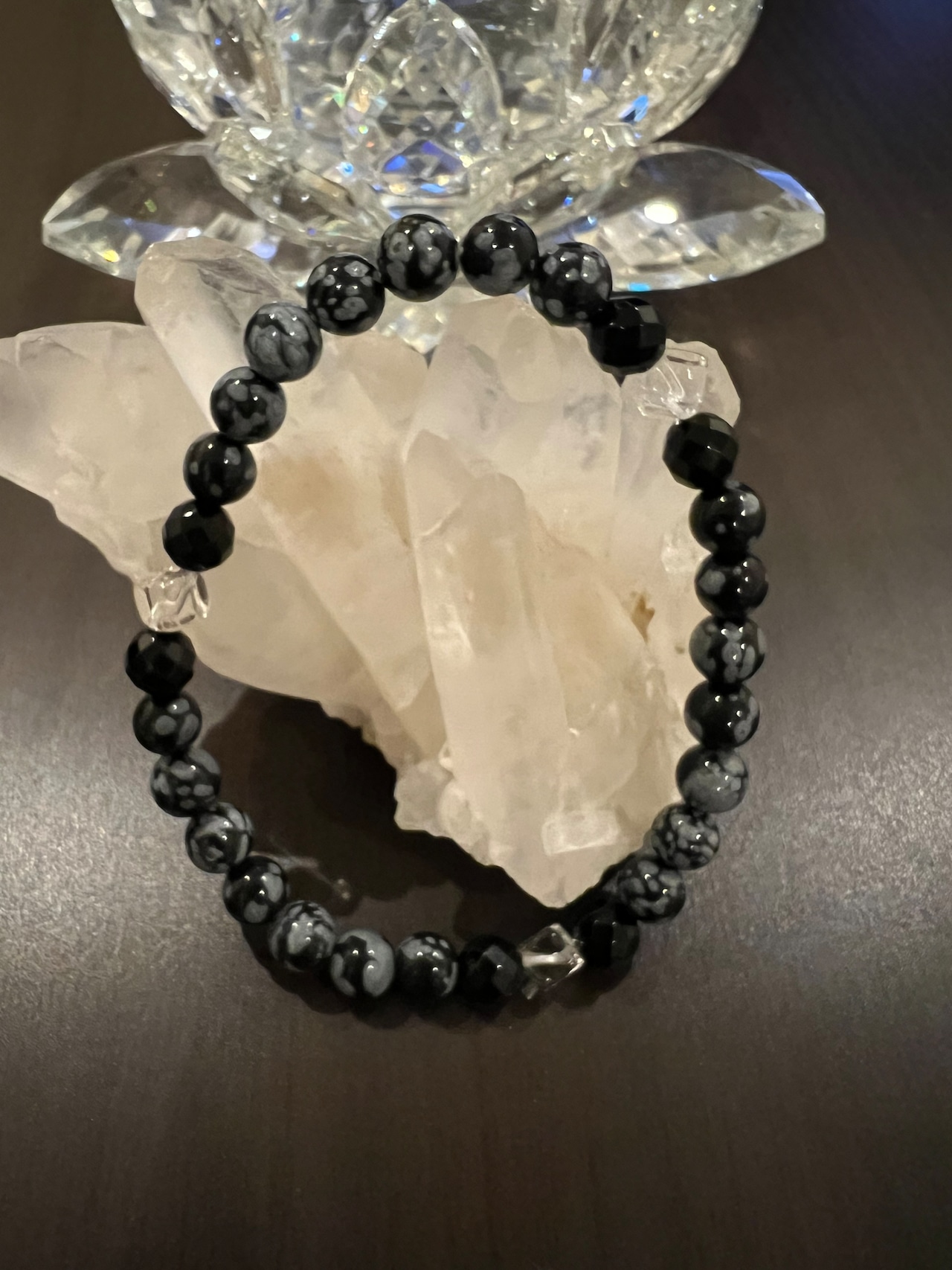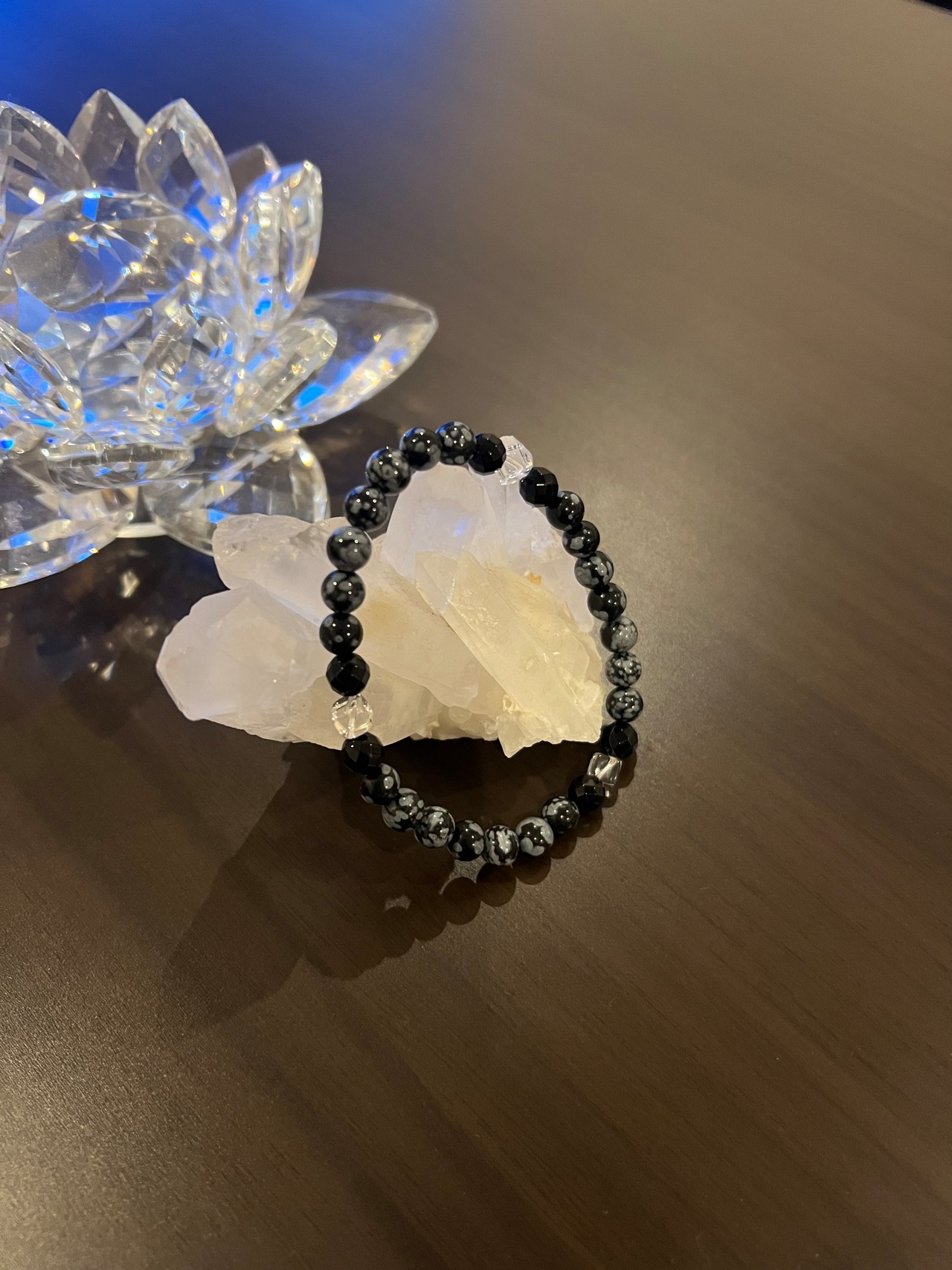 このブレスレットは、スノーフレークのパワーであなたの心を安定させ、カットオニキスの