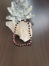 レッドタイガーアイは、勇気や活力を与え、ネガティブなエネルギーを払いのけると言われています。カット水晶は浄化や透明化の力を持ち、気持ちをリフレッシュさせてくれるでしょう。このブレスレットは、パワフルなエネルギーを持つ天然石でストレスや疲れを癒し、マイナスエネルギーをポジティブなものに変えてくれます。毎日のパワーが欲しい人や、ポジティブな気持ちで過ごしたい人におすすめのアイテムです。